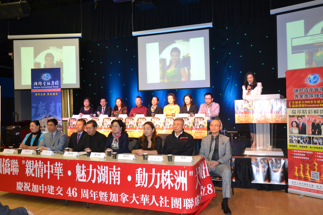 【温哥华乐活网Sonia Li报道】五月四日下午,今年时值加中文化交流年,为庆祝加中建交46周年暨加拿大华人社团联席会成立8周年,由加拿大华人社团联席会主办的中国侨联《亲情中华·魅力湖南·动力株洲》大型文艺演出新闻发布会在巨星舞台艺术学院隆重召开,本场发布会由著名主持人韩艾彤主持。到会的嘉宾有:本次活动筹委会执行主席(加拿大华人社团联席会执行主席)褚远征、首席荣誉主席(联席会名誉主席)廖子蔚、荣誉主席(联席会共同主席)王典奇、荣誉主席(联席会名誉主席)林决定、总统筹(联席会名誉主席)徐旭红、副总统筹(联席会执行委员)李卉、总策划(联席会顾问)郭亚欣、以及湖南同乡会、湖南总商会等近50家协办单位。参加发布会的嘉宾有近70人,会场气氛热烈。