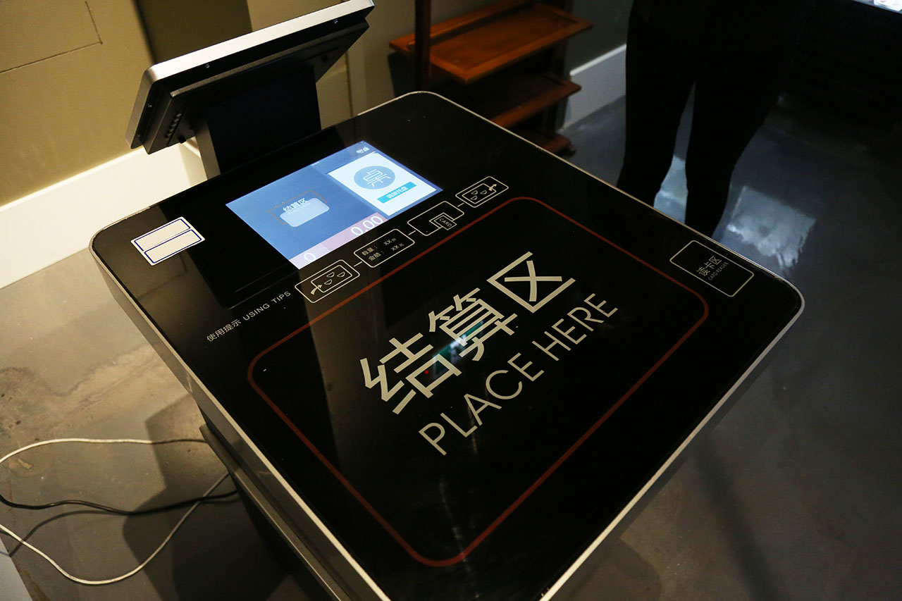 选好餐后,食物放在这个台子上刷卡,我研究了半天才发现原来碟子底部有芯片