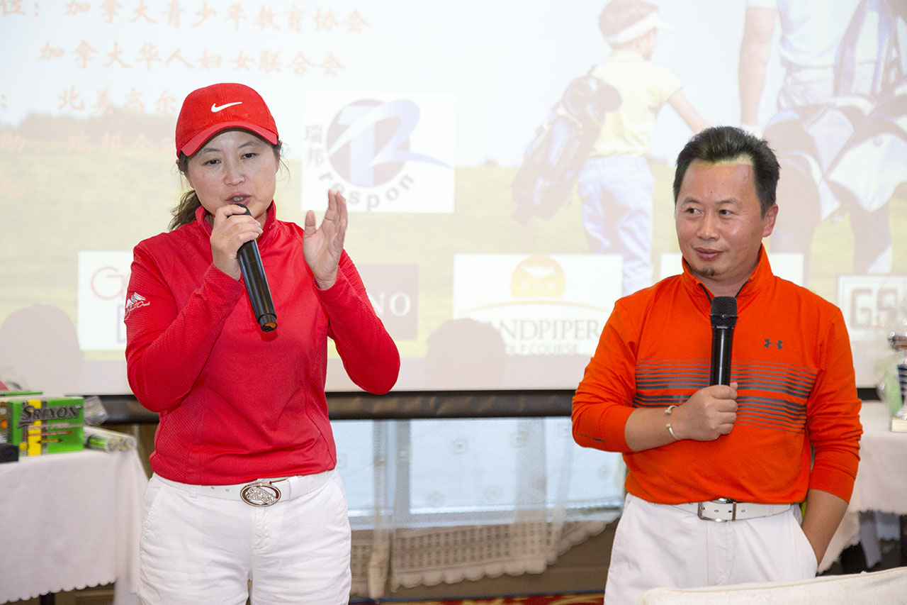 北美高尔夫假日负责人天水(左)、加中青少年高尔夫俱乐部负责人罗斌(右)担当主持