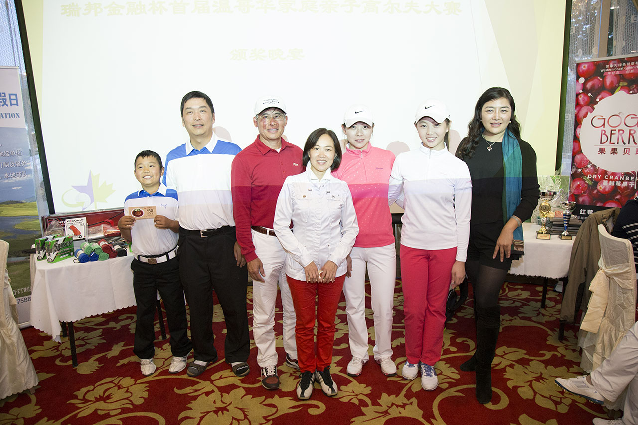 [加拿大乐活网lahoo.ca 乐斌报道、罗斌/陈星来/天水/乐斌摄影]9月5日瑞邦金融杯温哥华家庭亲子高尔夫大赛颁奖典礼在列治文新加乐海鲜酒家成功举办,大赛由北美高尔夫假日倡议发起,加中青少年高尔夫俱乐部主办,北美高尔夫假日承办,加拿大青少年教育协会和加拿大华人妇女联合会协办、瑞邦金融冠名赞助。本次大赛是温哥华华人社区首次举办以家庭为单位的大型高尔夫赛事活动,以家庭为单位:夫妻配对、父子(母子)配对、祖孙配对共33组选手参赛。