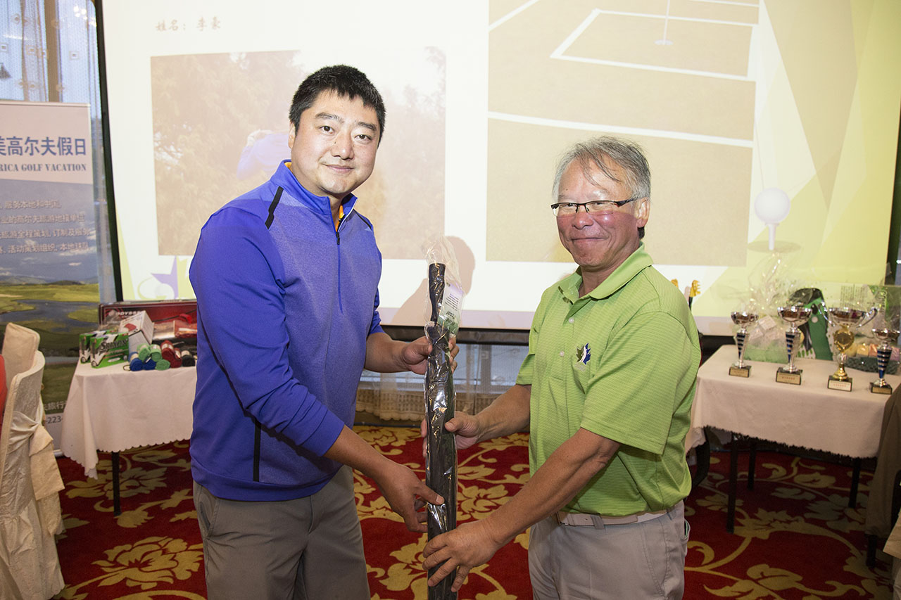 夫妻组总杆冠军:单双,Jerry赵 杆数:75(颁奖人:Sandpiper Golf Club总裁郭志勇)