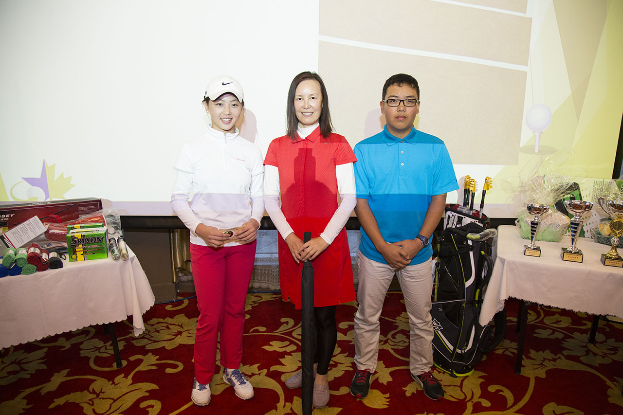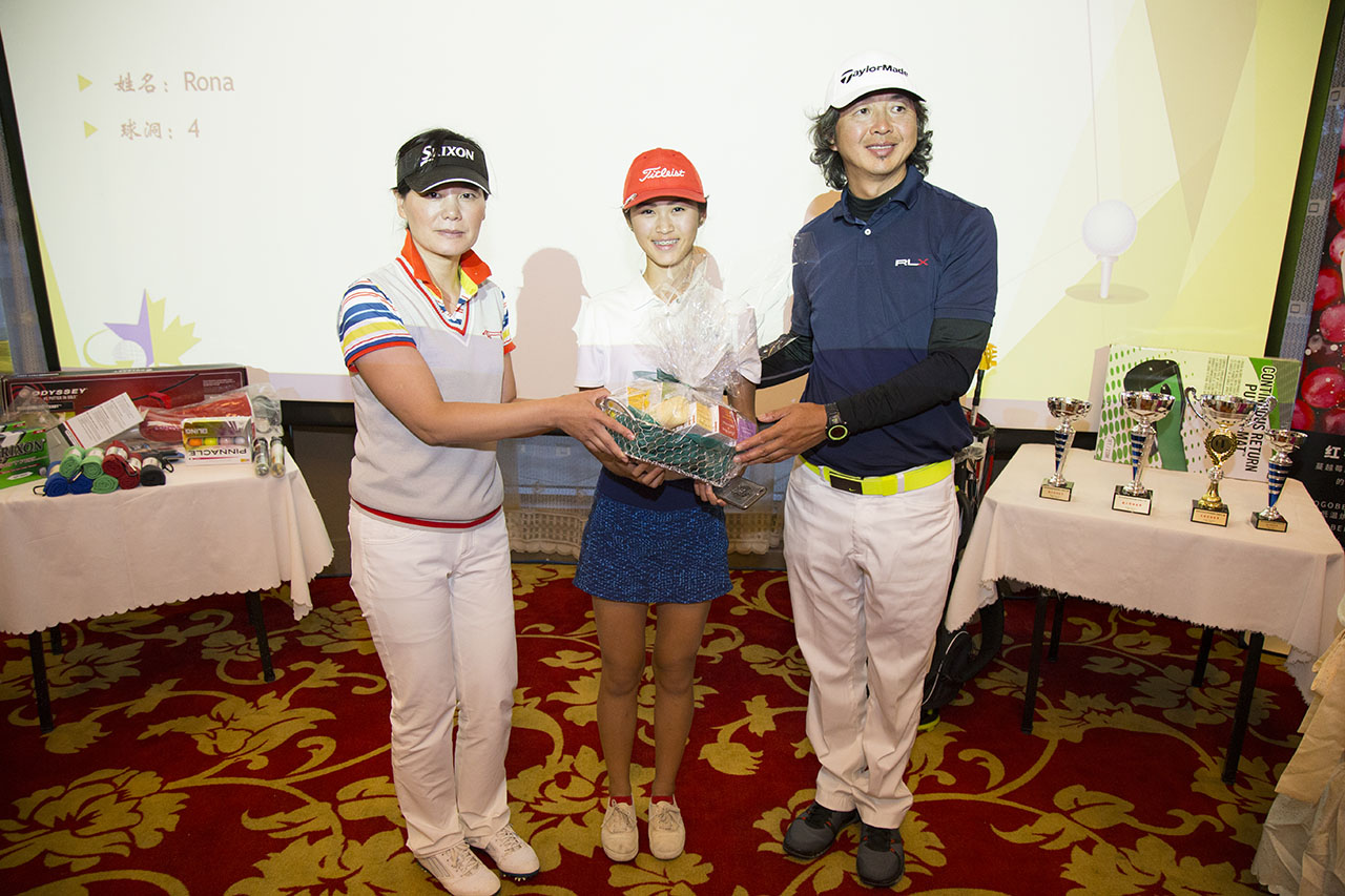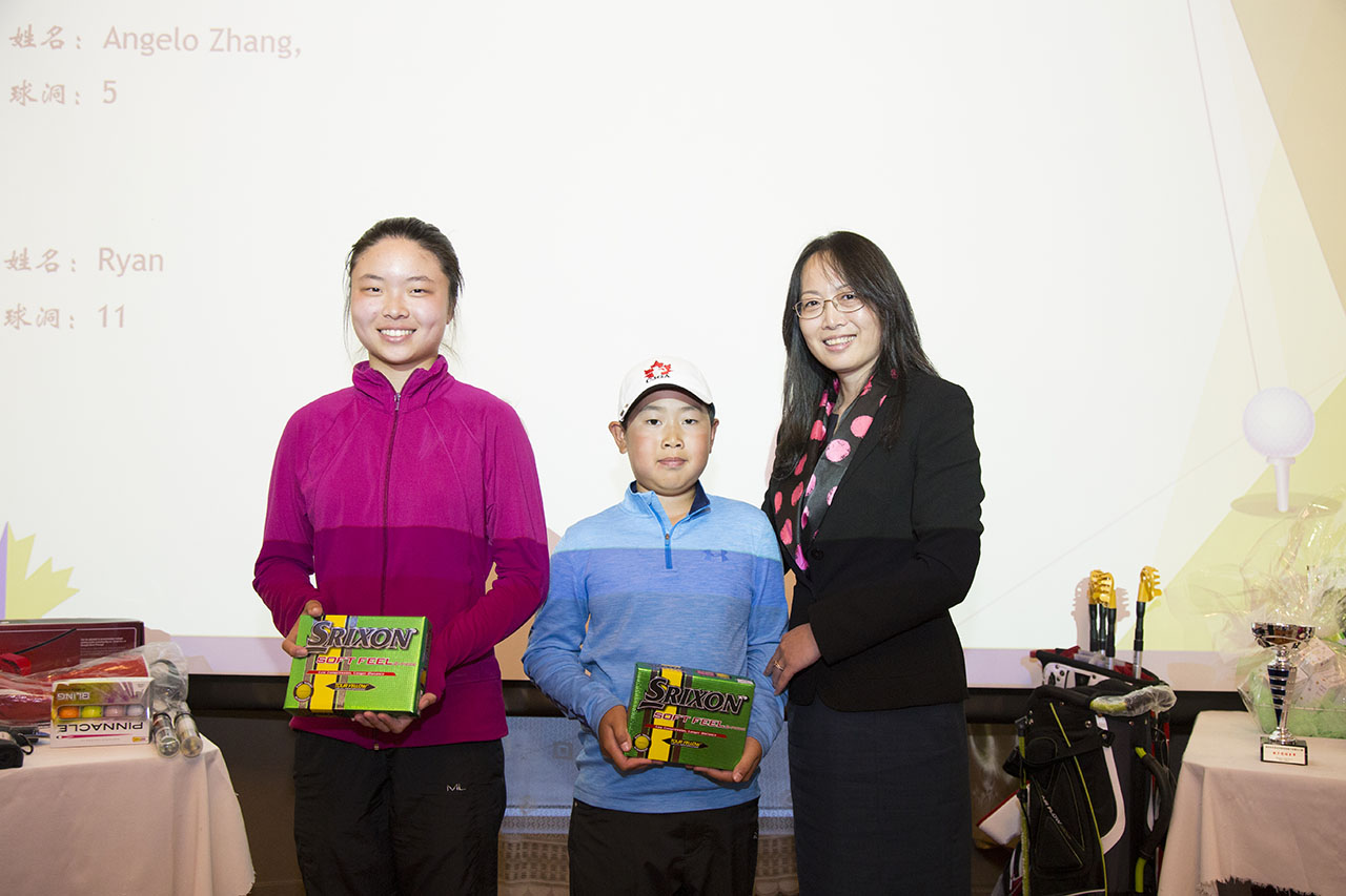 最近球洞奖:Kelly Xie、Rona(颁奖人:加拿大华人妇女联合会副会长王秀培)