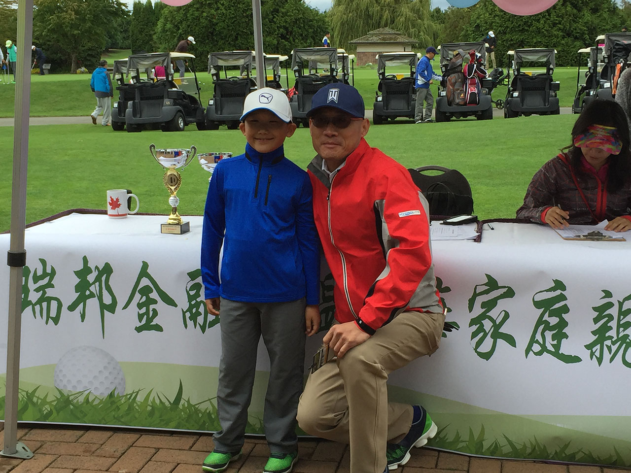 亲子组总杆季军:大山川,小山川 杆数:69(颁奖人:加拿大乐活网活动总监Marater)