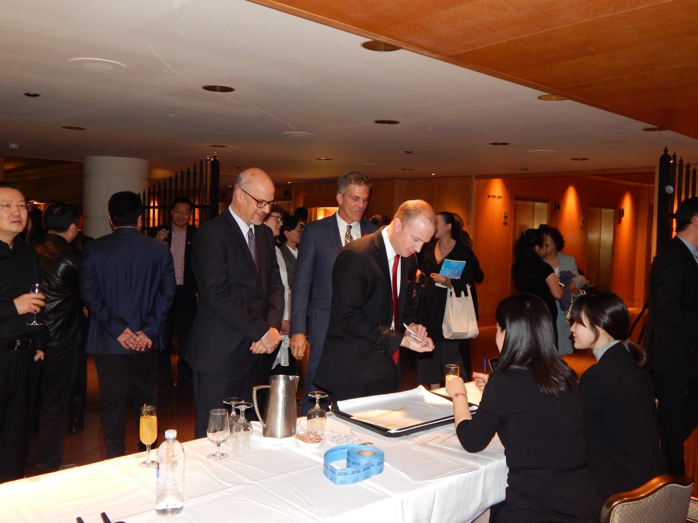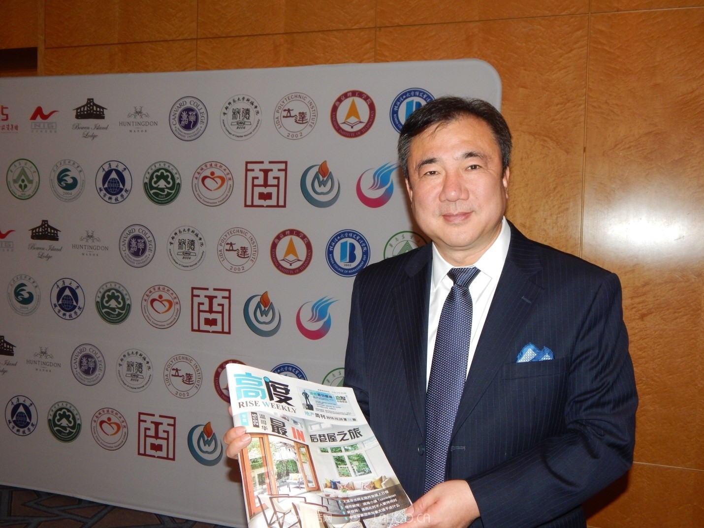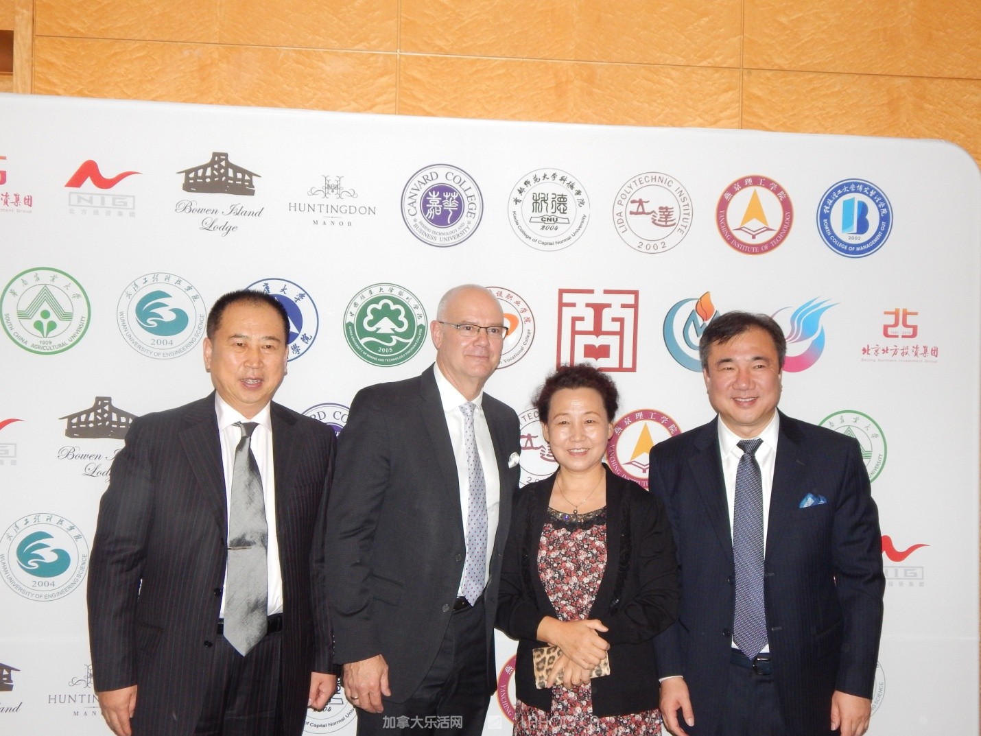 北方国际大学联盟 杨董事长与嘉宾们寒暄,闲话家常, 并与贵宾们在17所大学徽章前合影留念.