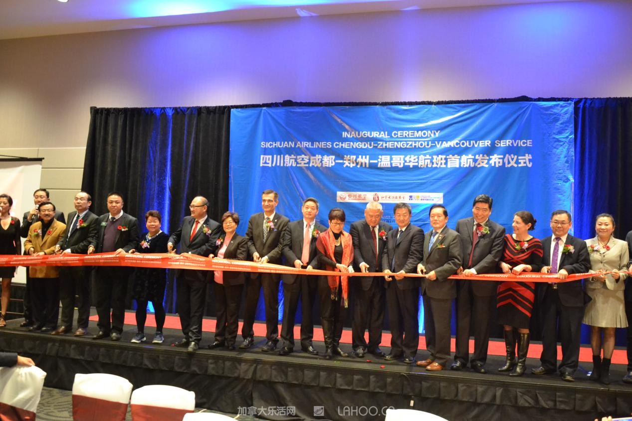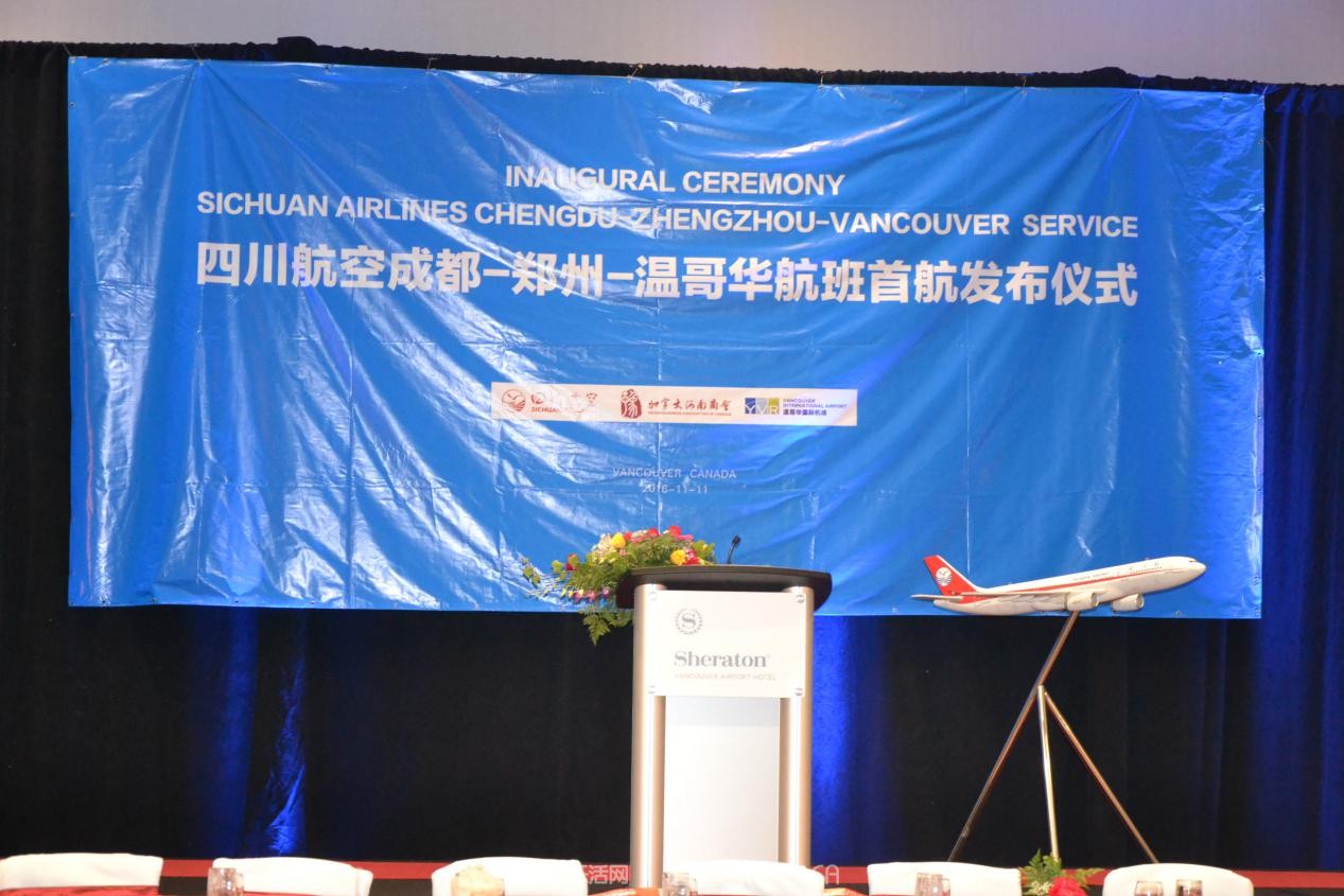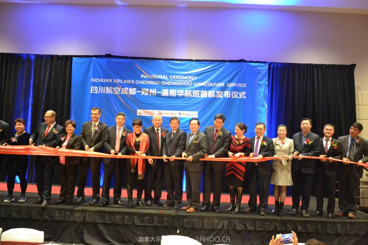 四川航空“温哥华-郑州-成都”航线首航发布剪裁仪式