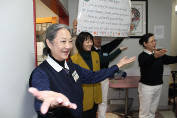 罗美玲师姊以「普天三无」和「爱与关怀」二首英文版手语歌曲带动,大家一起唱、一起比,藉由歌声和手语温暖大家的心,让悲伤及忧虑远去,祝福大家幸福快乐、充满希望,譲爱与关怀充满在世界每个角落。