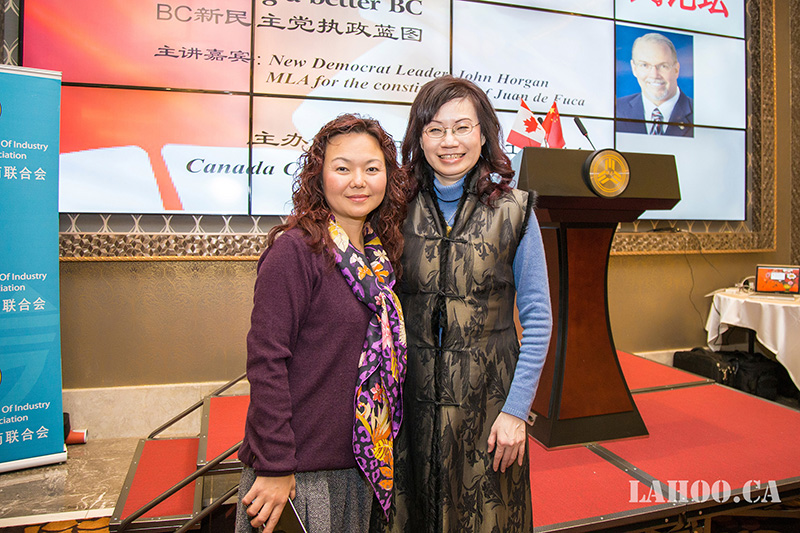 新民主党列治文北中选区省议员候选人邱丽莲女士和大温地产局金牌经纪苟红琳女士。