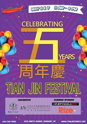 本次活动组委会顾问,加拿大中华道教关帝协会理事长–余嘉騄表示,遵行天金堂“能助则助;能救则救;能度则度”三大行事宗旨,服务与关怀社会、人群。 2012年开始组织庙会活动,天金堂成立五年以来,每年都会举办庙会,主要目的便是希望促进多元文化交流,让本地社区更了解传统庙会文化,过去几次活动均获得广大回响,促成今年的扩大举办,届时本拿比消防局,及图书馆亦将派出机动车辆与专人到场一起同乐。由于今年场地扩大,舞台也将比以往更大,活动期间将有各种精彩的音乐与舞蹈等多元文化表演、适合阖家同乐的游戏,当然也有庙会不可或缺的美食小吃。