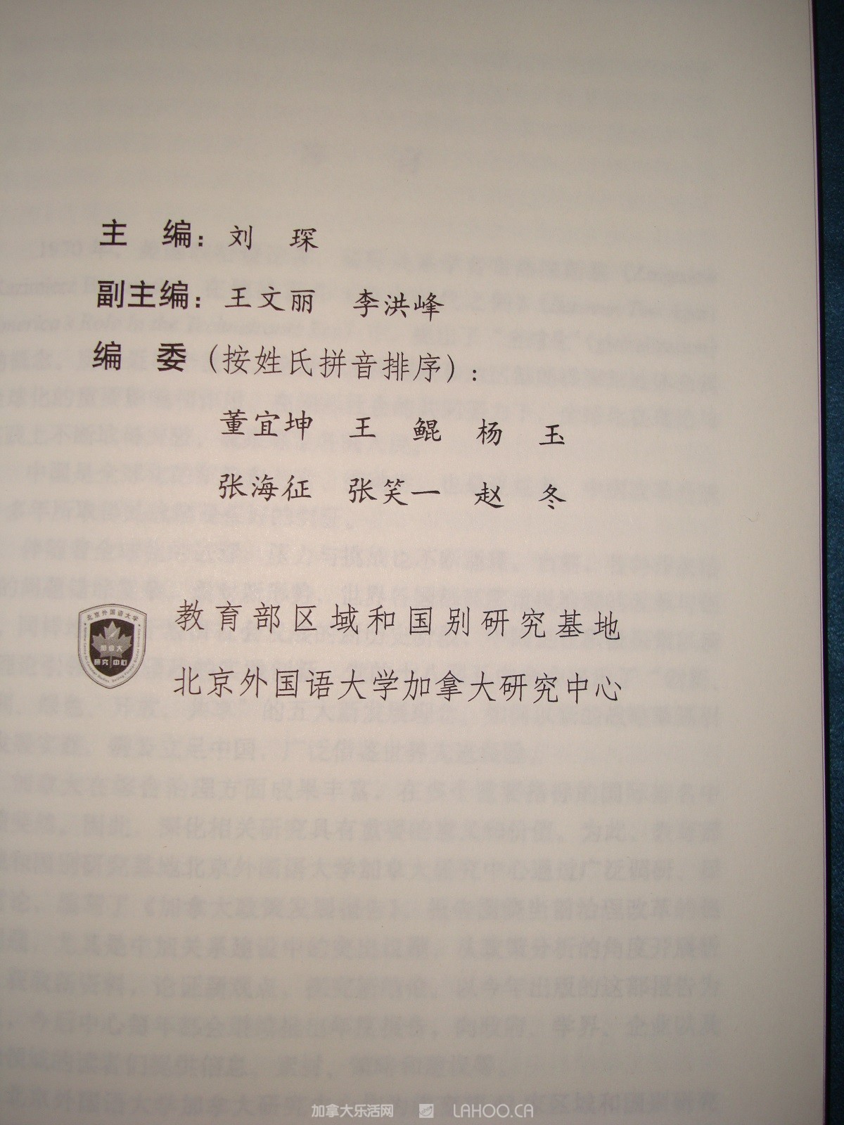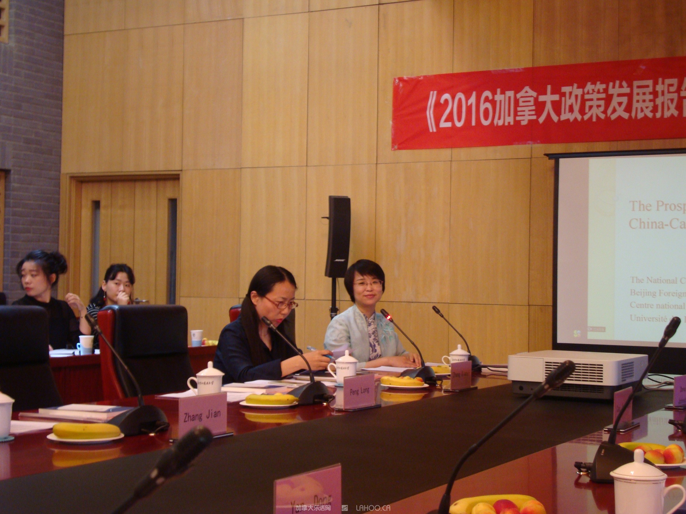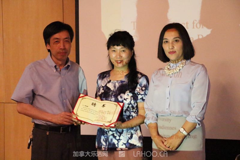 大会是由《2016加拿大政策发展报告》副主编之一王文丽老师主持。北京外国语大学加拿大研究中心主任刘琛首先代表教育部区域和国别研究基地和加拿大研究中心,对各位来宾表示敬意。她指出中加两国各领域交流具有很深远的意义。她强调去年李克强总理访加之后,在很多场合肯定中加关系的重要性。由于时代的需要,因此今年出版了《2016加拿大政策发展报告》。这本学术专著共分五个部分:外交、教育、法律、能源与环境和移民。刘琛主任希望该书能为中、加两国交流做出一些贡献。随后她介绍了这本书的编委、各板块负责人和作者,并宣布聘请贾葆蘅女士为北京外国语大学加拿大研究中心客座研究员。北京外国语大学英语学院院长张剑给贾葆蘅颁发了聘书。