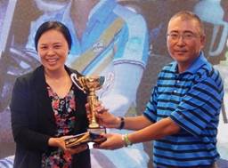 经过赛事组仔细公正地计算核准,由赛事组负责人天水向大会公布本次获奖团体和个人名单。筹委会邀请嘉宾,主办方和赞助方代表为获奖团队和个人颁发奖杯奖品。感谢上海复旦EMBA温哥华校友会特意为获奖团队及男女冠军送来了贺喜鲜花。本届团体冠军队队长David Xu代表获奖团队发表获奖感言,表示即刻筹备明年的中国大学校友会高尔夫联赛,决心把下届赛事办得更好。
