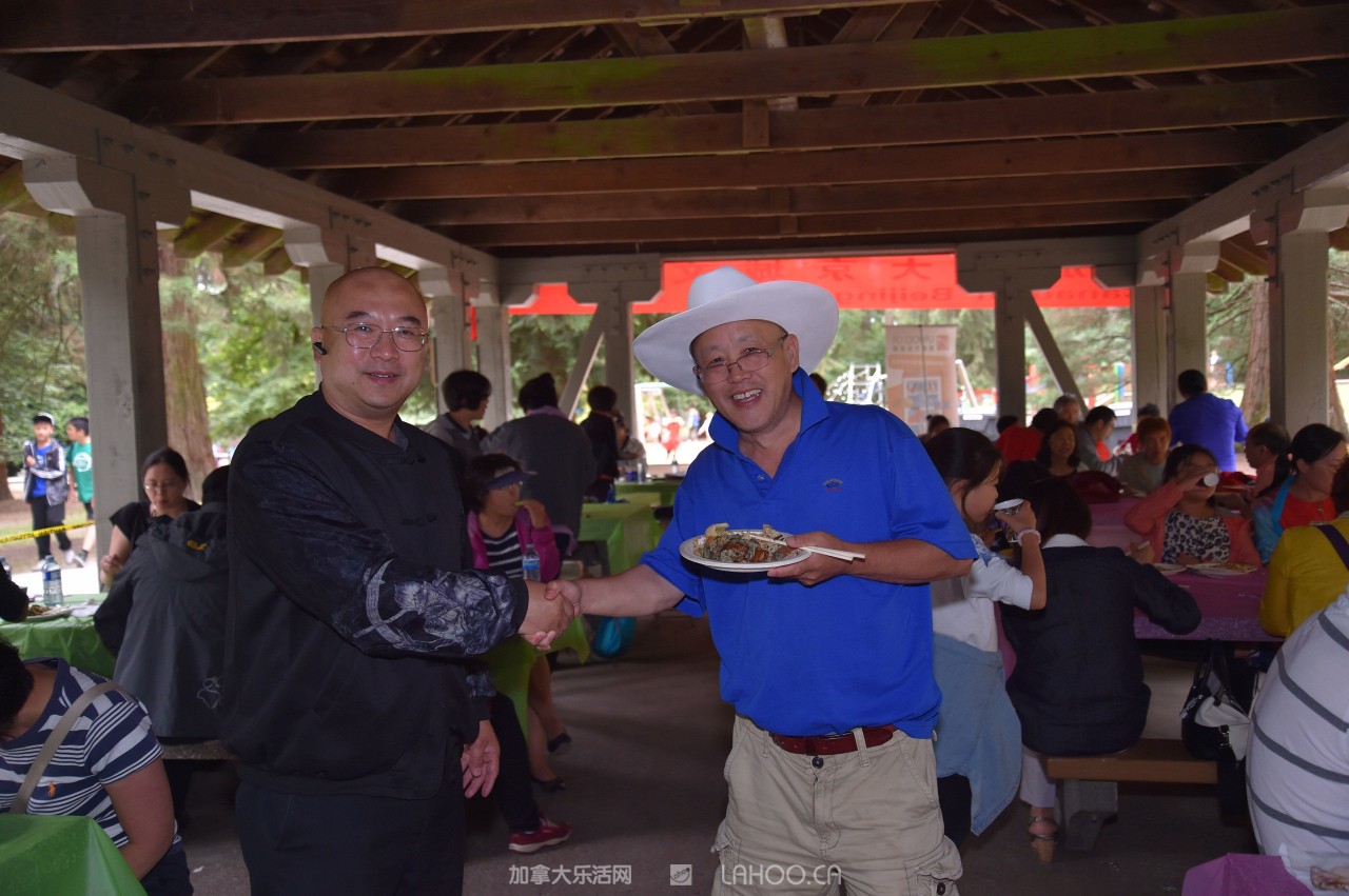 左一加拿大京城文化会当家的、会长刘祖鹰,中为京城文化会的老朋友、本拿比市议员王白进