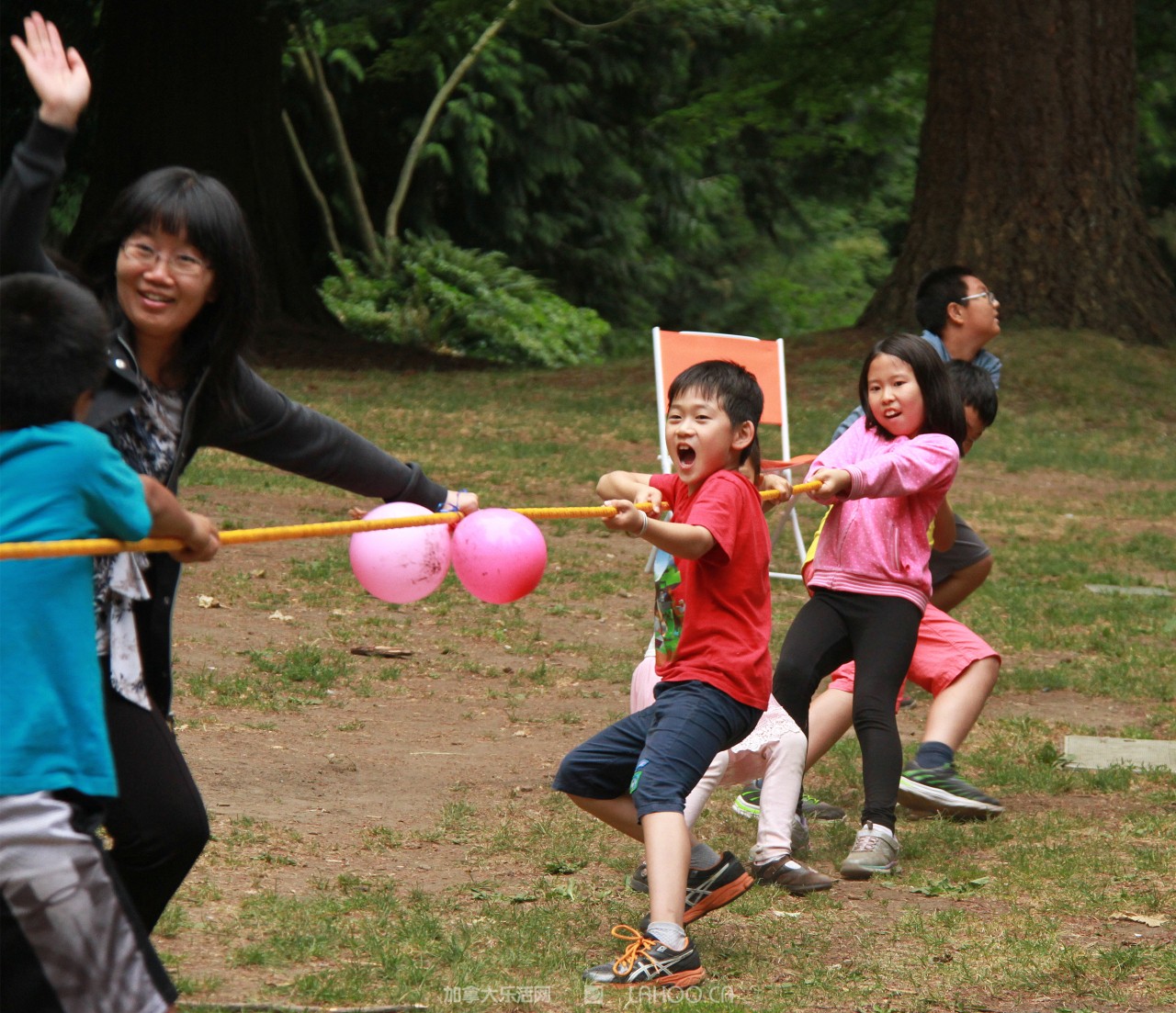 活动大戏,拔河-两个回合,儿童妇女组都轻松击败男士组 (是这样滴,八个男士都按100公斤体重算,儿童妇女组人数不限,哈哈,孩子们好开心,男士很沮丧,居然说是逗我们玩)
