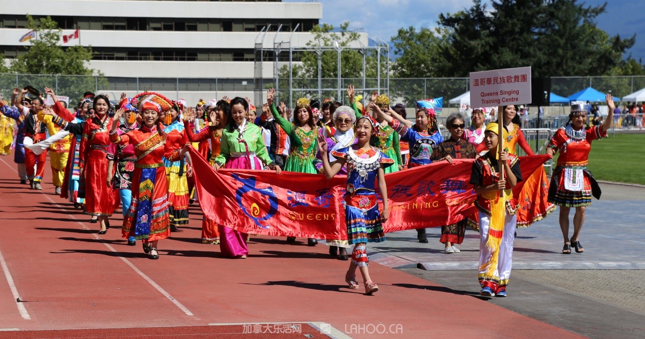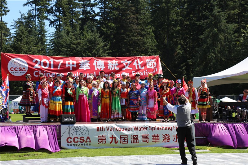 紧接着是温哥华民族歌舞团,成员们穿着各民族的服装,为大家展现中国多民族文化的精髓。