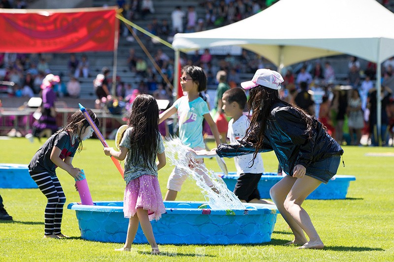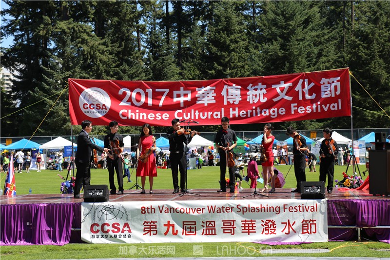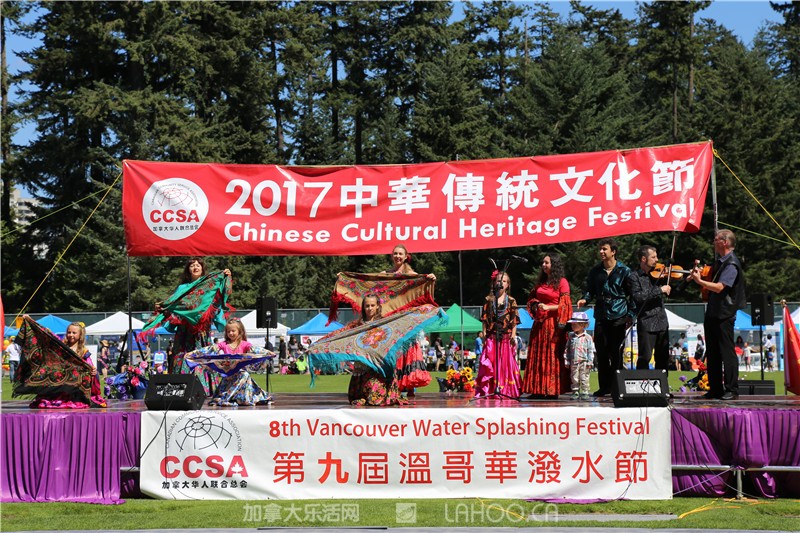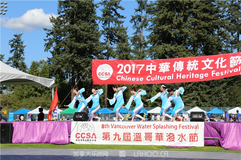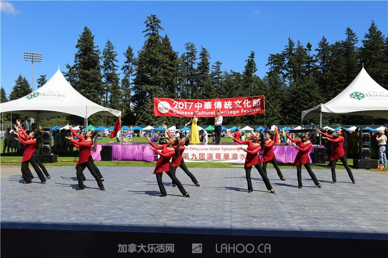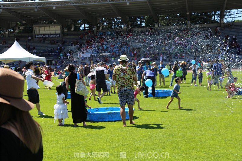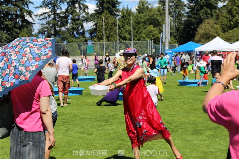 【加拿大乐活网 lahoo.ca 冯玮报道】七月的天气烈日炎炎,今天热情的不仅仅是太阳。本拿比中央公园体育场里举行了一场盛大的庆典——2017年中华传统文化节暨第九届温哥华泼水节。观众们的热情呼喊,表演嘉宾们的热烈演出,志愿者们的无私奉献及工作人员的任劳任怨,无一不为七月的今天增添一份精彩与火热!