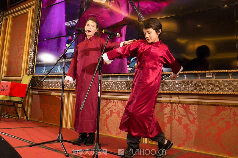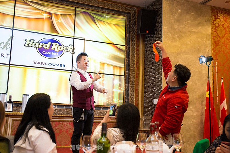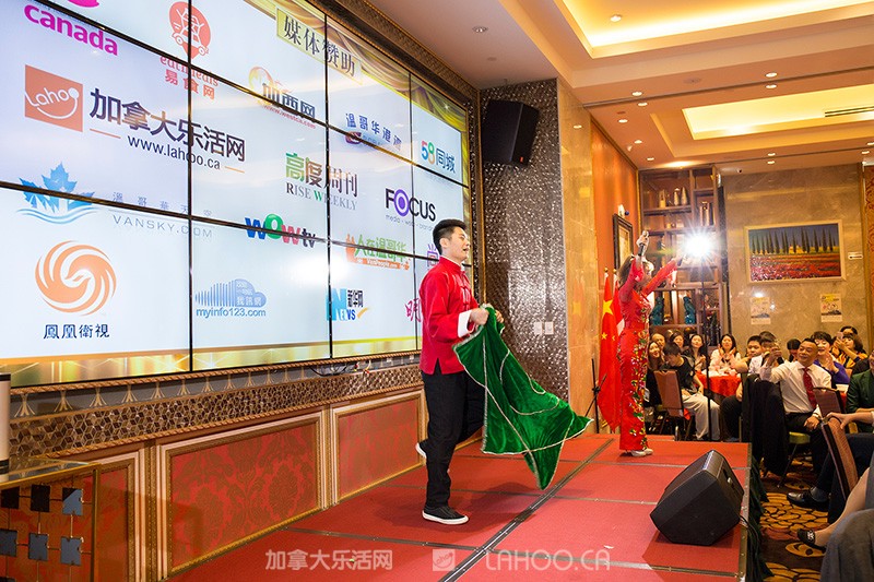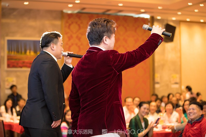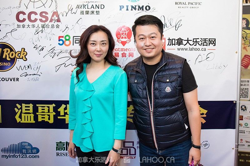 由温哥华华美女主持Bonnie(左一)和温哥华资深金牌主持人吴彤(右一)共同担纲现场主持