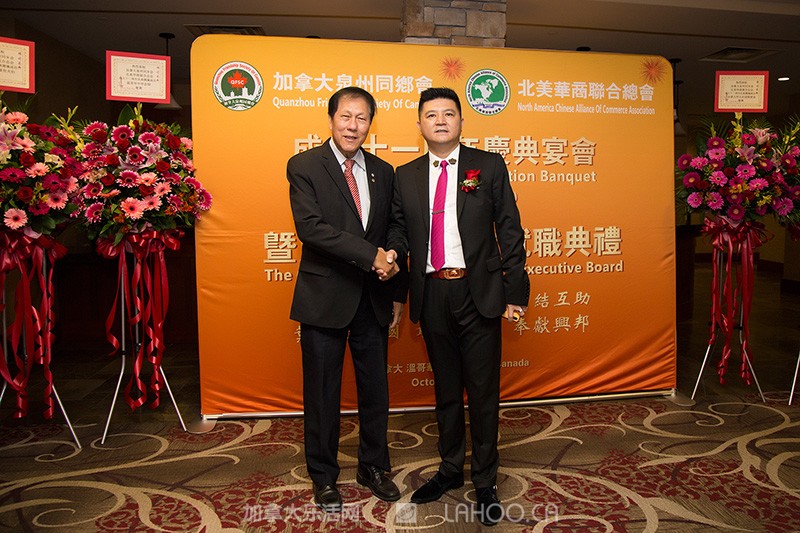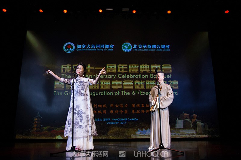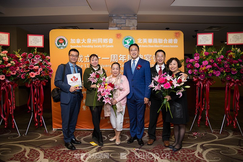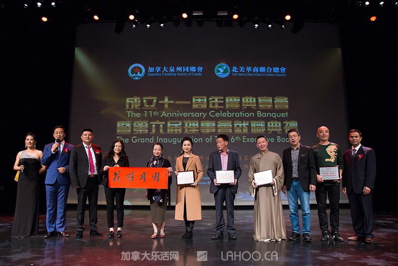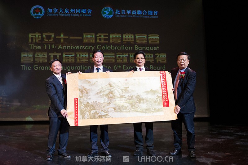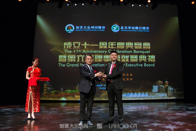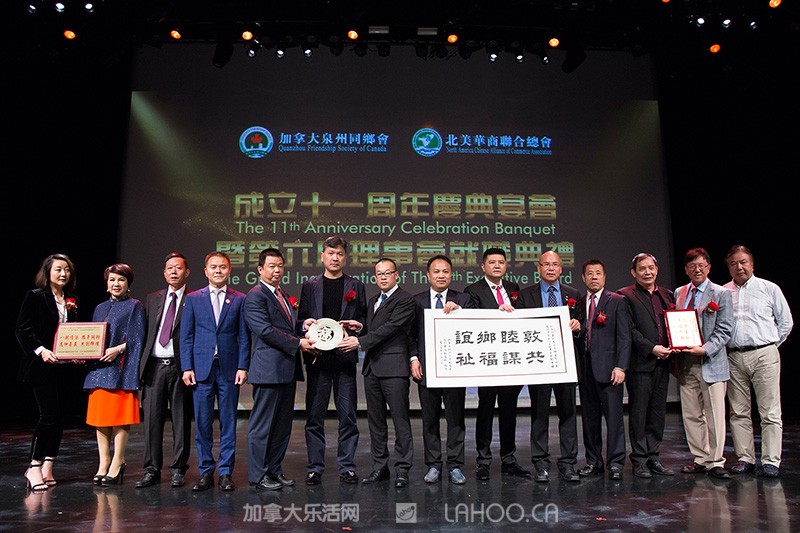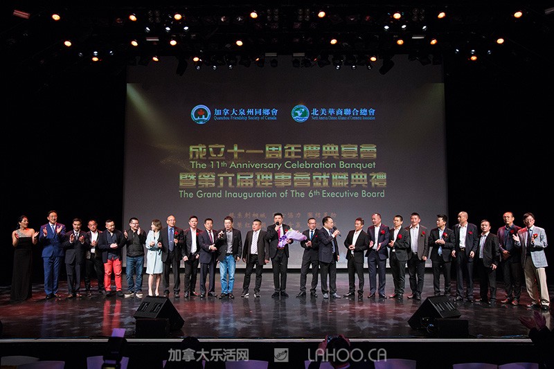 [加拿大乐活网 lahoo.ca 乐斌报道]2017年10月8日加拿大泉州同乡会/北美华商联合总会成立十一周年庆典宴会暨第六届理事会就职典礼在温哥华河石剧场拉开帷幕,一年又一年,大家风雨兼程,泉州同乡会及北美华商联合总会已经走过了十一年.十一年里,两会从小到大、从弱到强,期间人才辈出,荣誉频加,创造了一个又一个属于泉州人,更是属于世界华人的传奇。两会的发展离不开全体理事的努力,两会的发展更离不开所有泉州乡亲的关怀和奉献。加拿大泉州同乡会暨北美华商联合总会对社区及乡亲的贡献,亦多次获得加拿大三级政府及各级政要的嘉许与赞赏。两会也将秉承“和谐、积极、友善、奉献”的社团精神,携手本会所有乡亲竭尽全力,为加拿大、祖籍国(中国)做出更有意义的贡献,携手共创一个更加美好辉煌的明天!加拿大乐活网及高度周刊全程报道本次庆典。