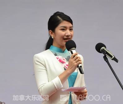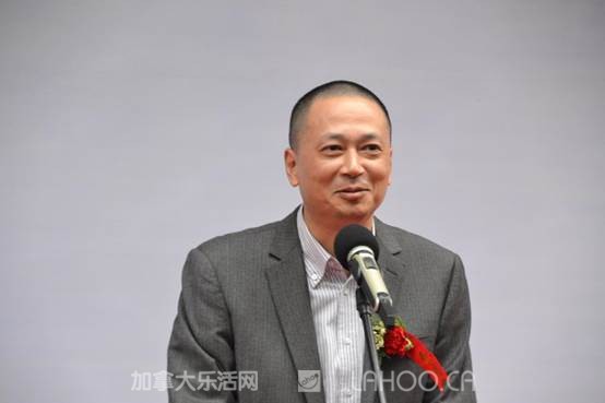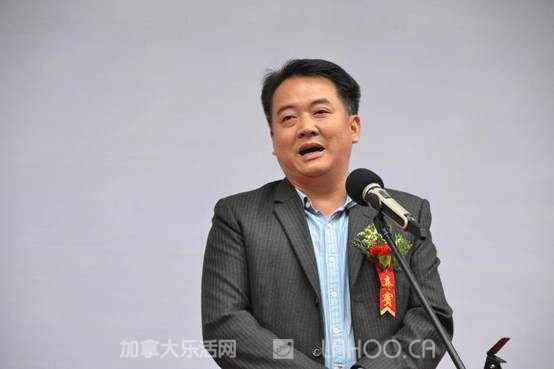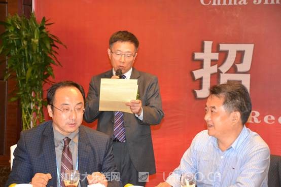 加拿大商务考察团秘书长彭先民宣读加拿大列治文市议员区泽光的贺信