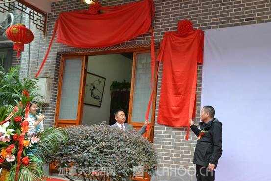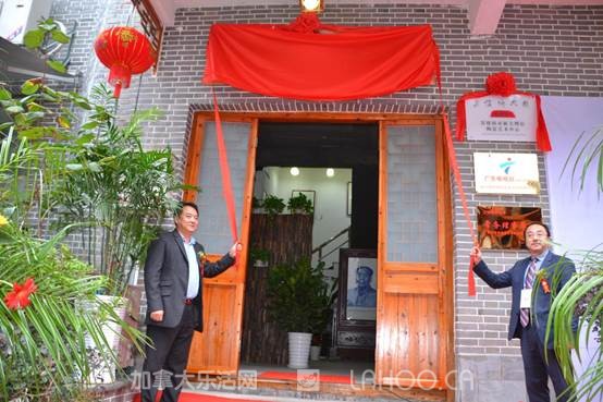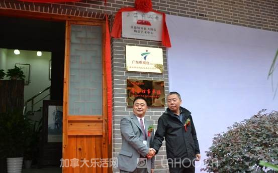 在广东电视台《古韵今谈》主持人唐娜主持下,由任永新副厅长、张良华副市长、加拿大代表团寇鸿久团长和新大博艺公司张荣华总裁隆重揭牌: