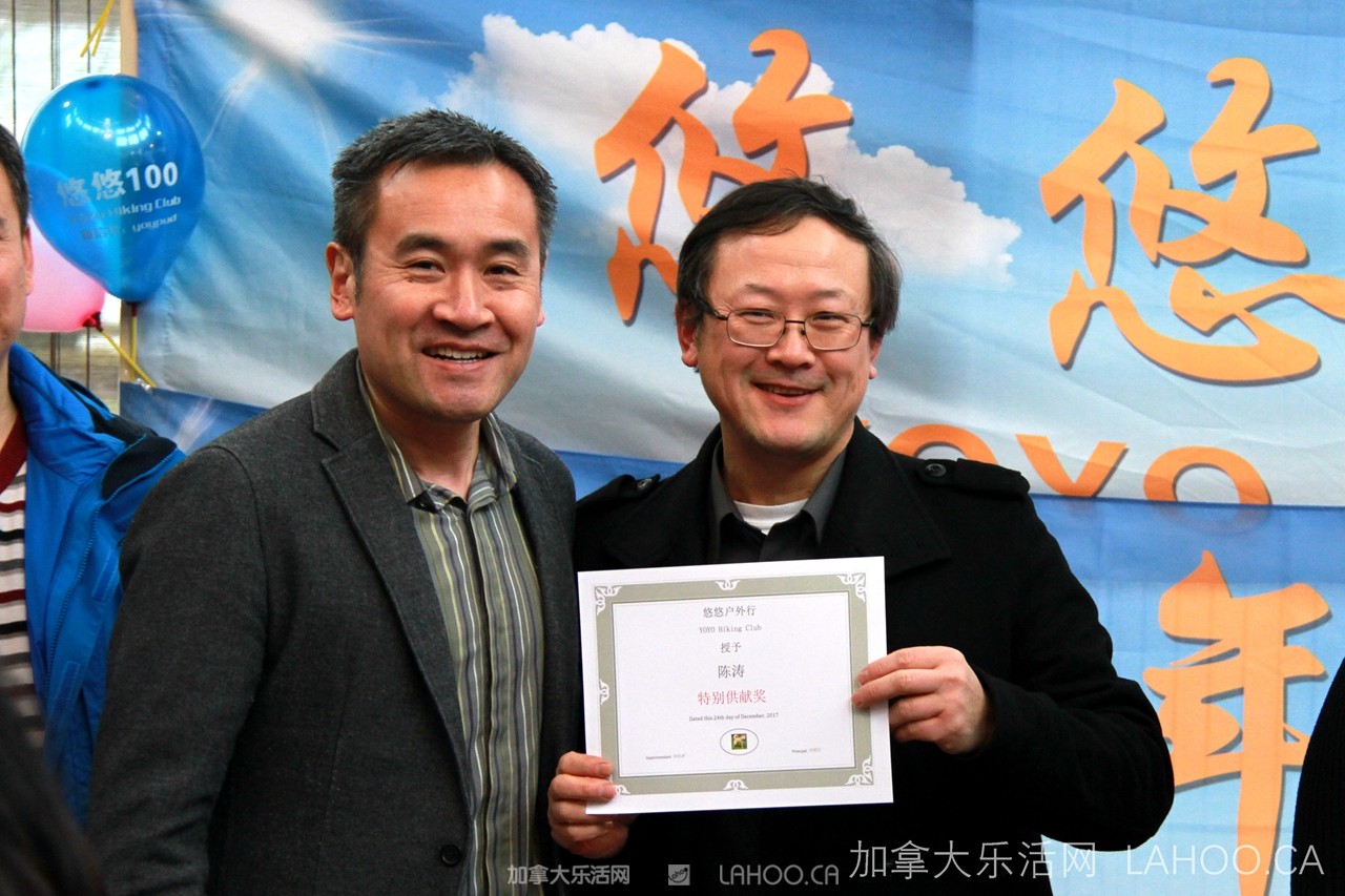 悠悠义务摄影师Rose Jia、大鸿、冰激凌、Eugenia在悠悠健行时跑前跑后为大家照相,为“悠悠户外行”留下了数不清的美照,获得“杰出奉献奖”;