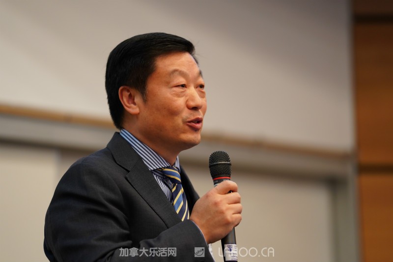 王光玉院长首先感谢参加学生的学生,他本来以为没有多少人,但是没想到报名人数再三增加,最后到了400多人,不得不更换活动场地;其次感企业家百忙之中来分享创业经历和经验,并愿意提供工作机会;最后,他表示今天的活动采用中文,但是加拿大母语是英文,以后会创造更多英文交流机会,吸引更多的人参加。