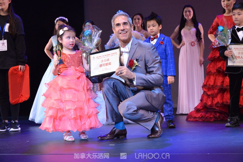 评委Rick Genovese为2号Sophia Burmister颁发少儿组最可爱奖