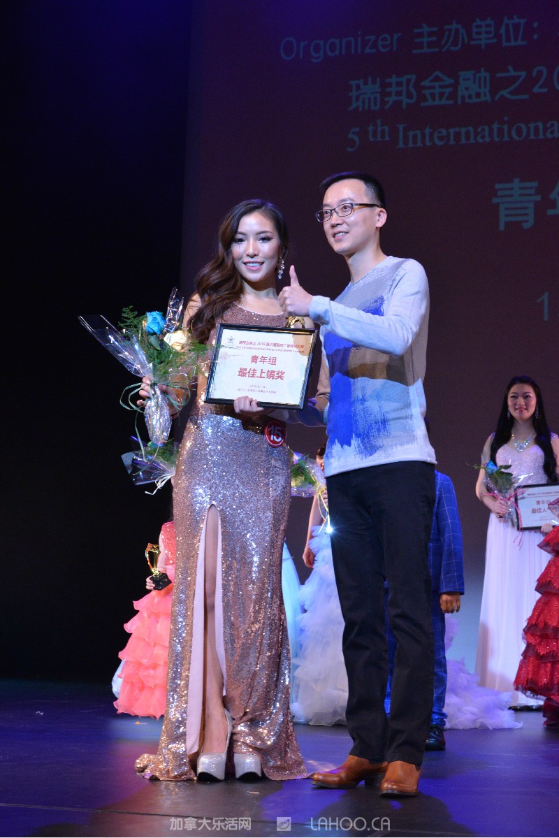 郭亚欣先生为16号 Christine He 何茜颁发青年组最佳人气奖