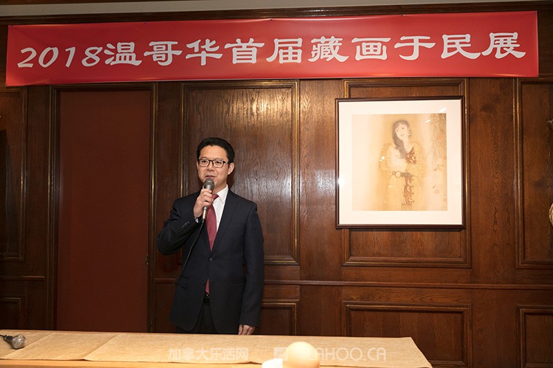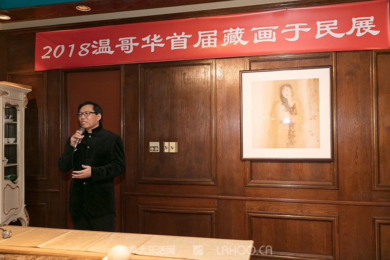 [加拿大乐活网lahoo.ca 乐斌报道 Su Yiheng摄影]2018年2月7日,由温哥华中华文化艺术基金会和中国潘天寿基金会联合主办,中国艺术市场网和温哥华极康养生会所承办的温哥华首届藏画于民活动在温哥华极康养生会所(1077 W 55th Ave, Vancouver)拉开帷幕。本次活动共组织了50幅中国书画精品,每幅统一售价2000加元,购券摸画方式进行。中国风“藏画于民”首次进入加拿大,从2018年2月7日至21日公开展出,将给居住在北极圈生活的大中华圈华人带来了一份浓浓的故乡情。加拿大乐活网及高度周刊作为支持单位全程报道本次活动。