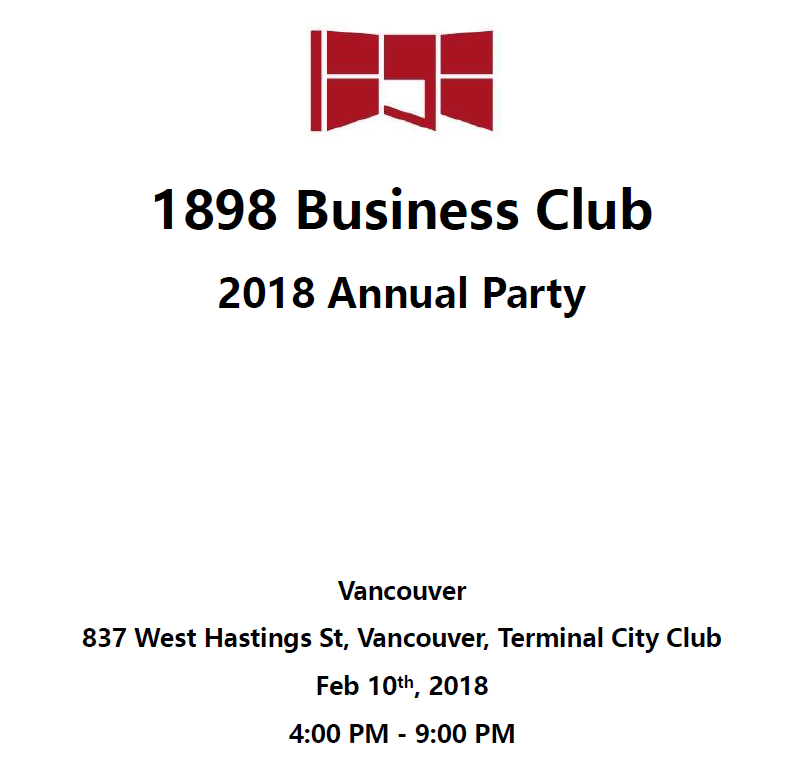 1898 商务俱乐部是北京大学校友在加拿大温哥华创建的、旨在服务股东、会员及社会各界的开放式商务平台。俱乐部的联合创始人在各行业中多为成功的翘楚之士,涵盖了金融投资、医疗健康、房地产、自然资源、航运物流、教育科技、环保新能源、旅游文化、法律证券等国民经济的主要领域。1898 商务俱乐部,以繁荣加中经济文化为己任,发挥全球30 万北大校友的资源优势,联动国际1898 的营运平台,坚持守正创新,注重成果效益,扶助青年创业,孵化优秀企业,携手社会各界共创美好未来!