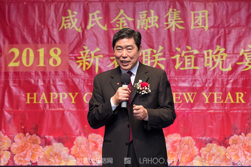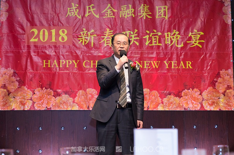 从业金融27年,连续18年荣获全球寿险精英最高荣衔-环球百万圆桌顶尖会员。咸氏金融集团公司董事长兼总裁咸生林取得了卓越非凡的个人业绩,并且以“德,梦,勤,专”的核心经营理念,将咸氏金融集团建成了高手如云的明星企业。咸生林先生在讲话中提到:“我代表咸氏金融集团公司全体同仁,对大家抽出你们的宝贵时间,参加我们新年温哥华、多伦多及渥太华系列答谢晚宴,表示衷心的感谢!今晚首先要感谢咸氏金融集团全体同仁辛勤耕耘,感谢广大客户长期给我们的信任,感谢媒体及社会各界对我们的呵护和厚爱!”