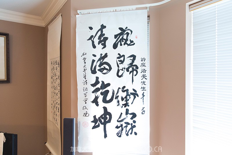 来温哥华生活了十二年,跟伯父伯母的相处就更多了。回忆起跟伯父伯母一起的点点滴滴,非常敬佩他的为人。洛夫先生移民温哥华后,依然笔耕不辍,我们的第一次赴温也是住在他家“雪楼”。他每天上午都要在雪楼的书房写诗或写书法,下午游泳,常年坚持不辍,他家经常高朋满座欢声笑语,伯父对向他请教的晚辈非常耐心。