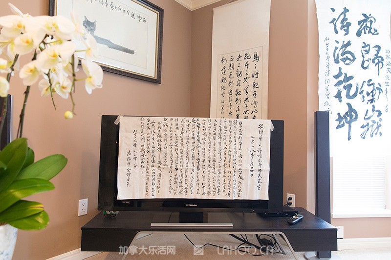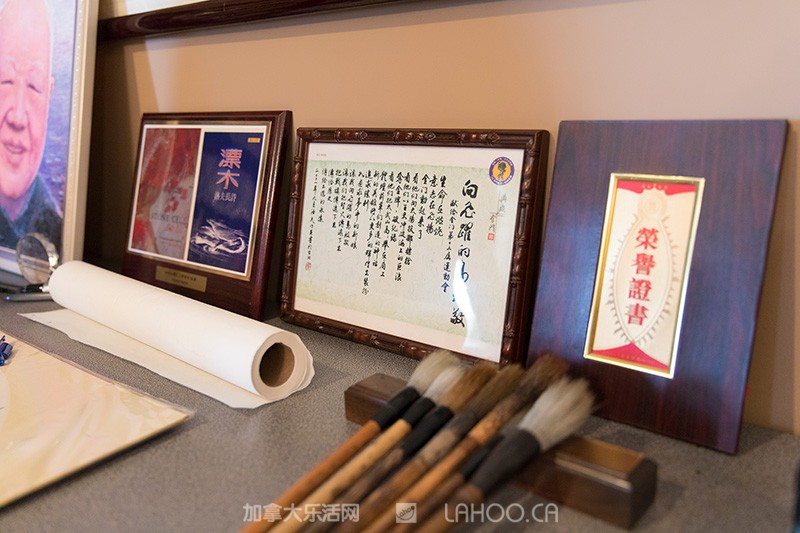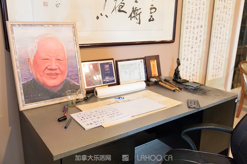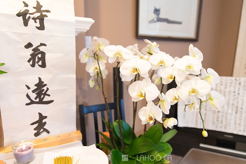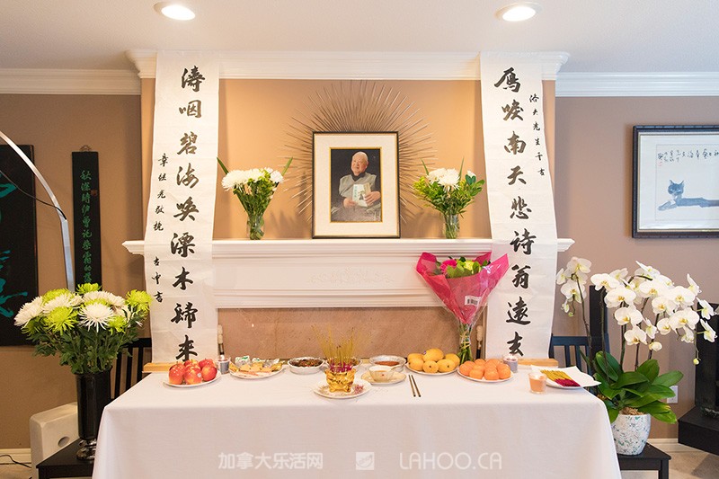 牧辰庄园,温哥华洛夫文学馆里,洛老的故居里的“雪楼”牌匾书桌,洛老平常使用的毛笔,椅子,洛老写的书法条幅……依旧,依旧,唯有多了些挽联,素花,人们的泪水……