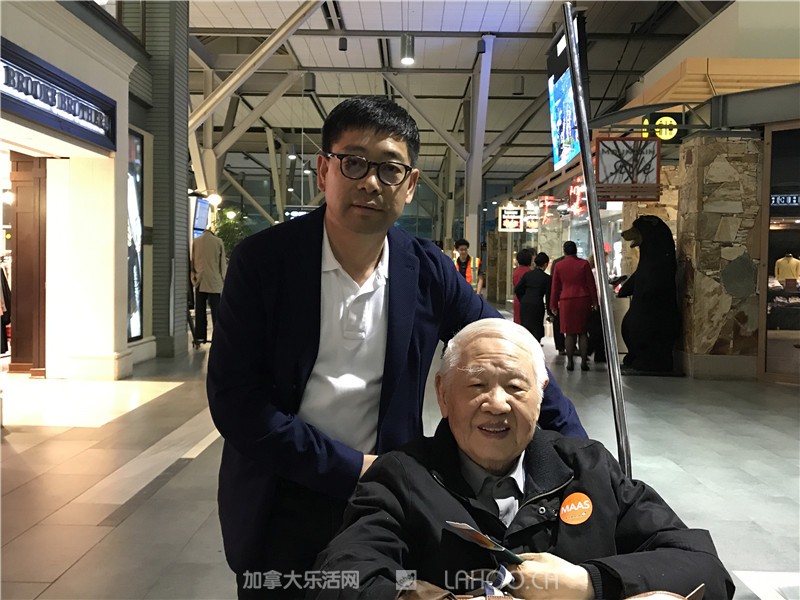洛夫先生最后离开温哥华在机场留影,推车者为刘毅