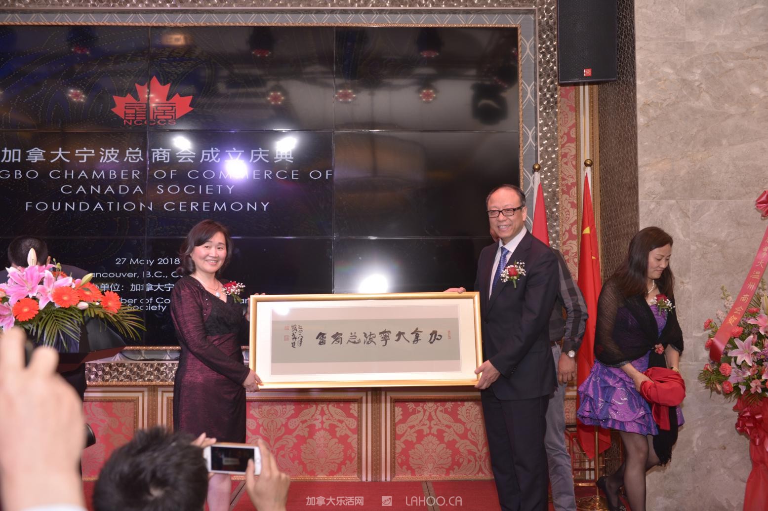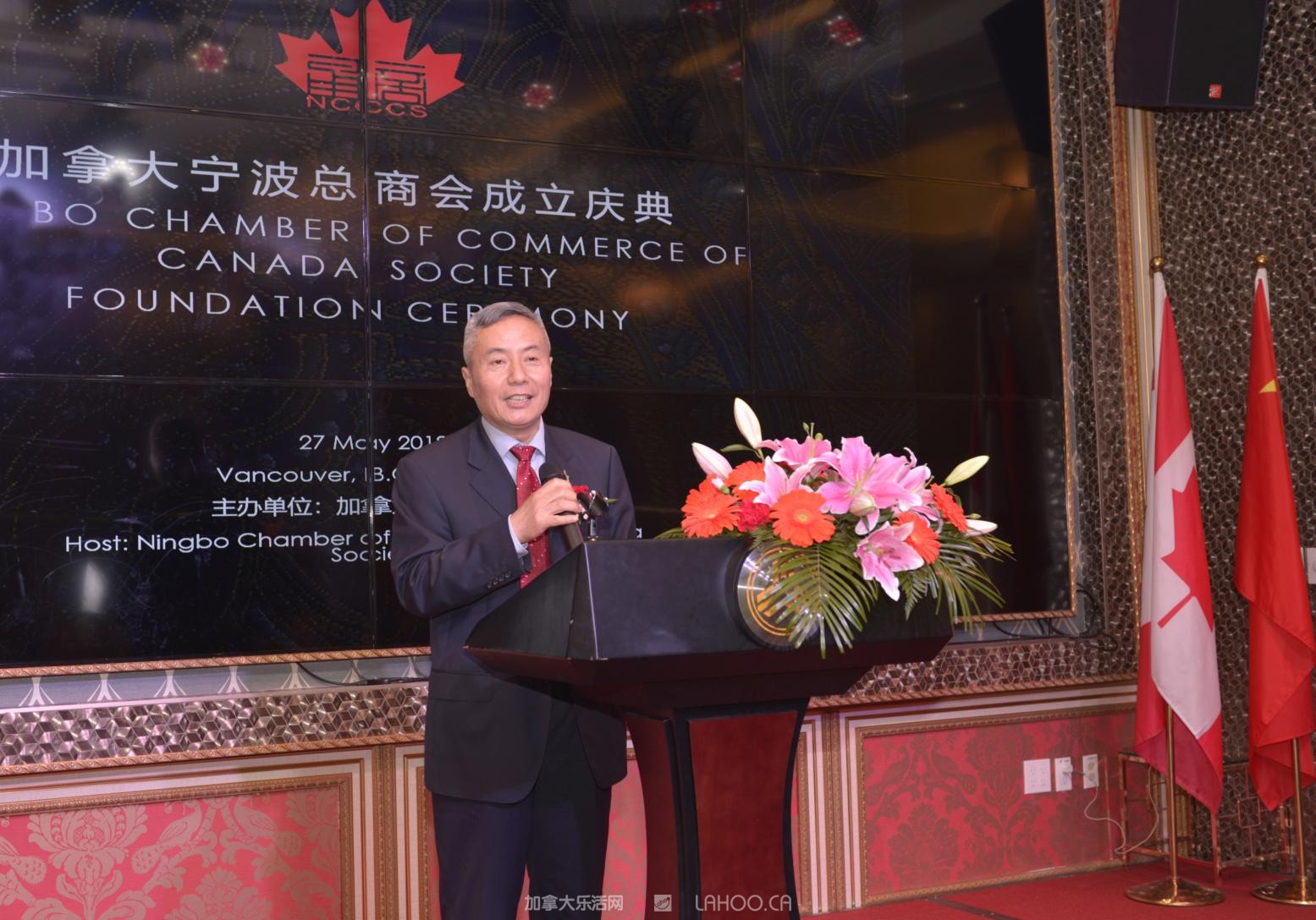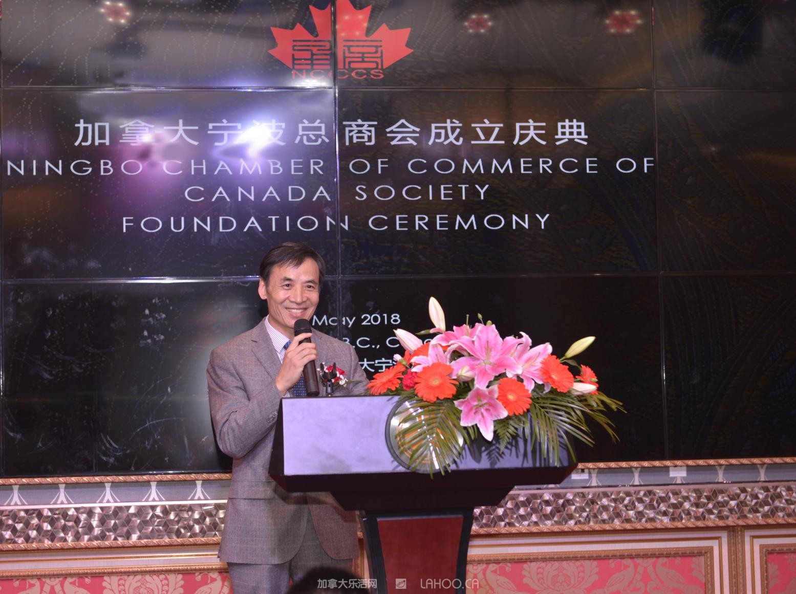 本拿比代理市长王白进代表市长议会表示祝贺,感谢了郑会长长期以来在华人侨建所做的贡献,宁波总商会的成立意义非常大,本拿比与浙江的许多城市有很多友好的交流和往来,希望宁波总商会能推动本拿比和宁波二个城市的交流,并邀请和欢迎宁波代表团有机会参加7月29日在本拿比举办的加拿大中华文化节。宁波和温哥华同是海滨城市,加拿大与中国有传统的友谊,又有这么多的华人,希望本拿比与中国的明星城市宁波今后能有机会常来常往。