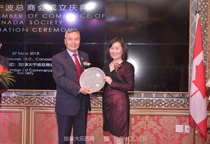 《乐尚她乡(微信ID:chicvancouver)本网讯》宁波总商会于5 月27 日傍晚在加拿大温哥华半岛明珠酒店举行了盛大成立揭牌仪式暨宁波市海外交流协会温哥华分会受牌仪式以及”侨梦苑”项目推介会。中国驻温哥华副总领事孔玮玮、浙江省宁波市人民政府侨务办公室主任顾正为、宁波市海曙区委统战部长李冠杰 、宁波市人民政府侨务办公室综合处处长张伟、经科处主任王波、宁波电商经济创新园区产业发展局副局长余春丰、加拿大本拿比代市长王白进、国会议员Don Davies助理张维俏、加拿大温州商会会长游兆年、本拿比华人总会副会长王健等各界来宾约100人出席了仪式。