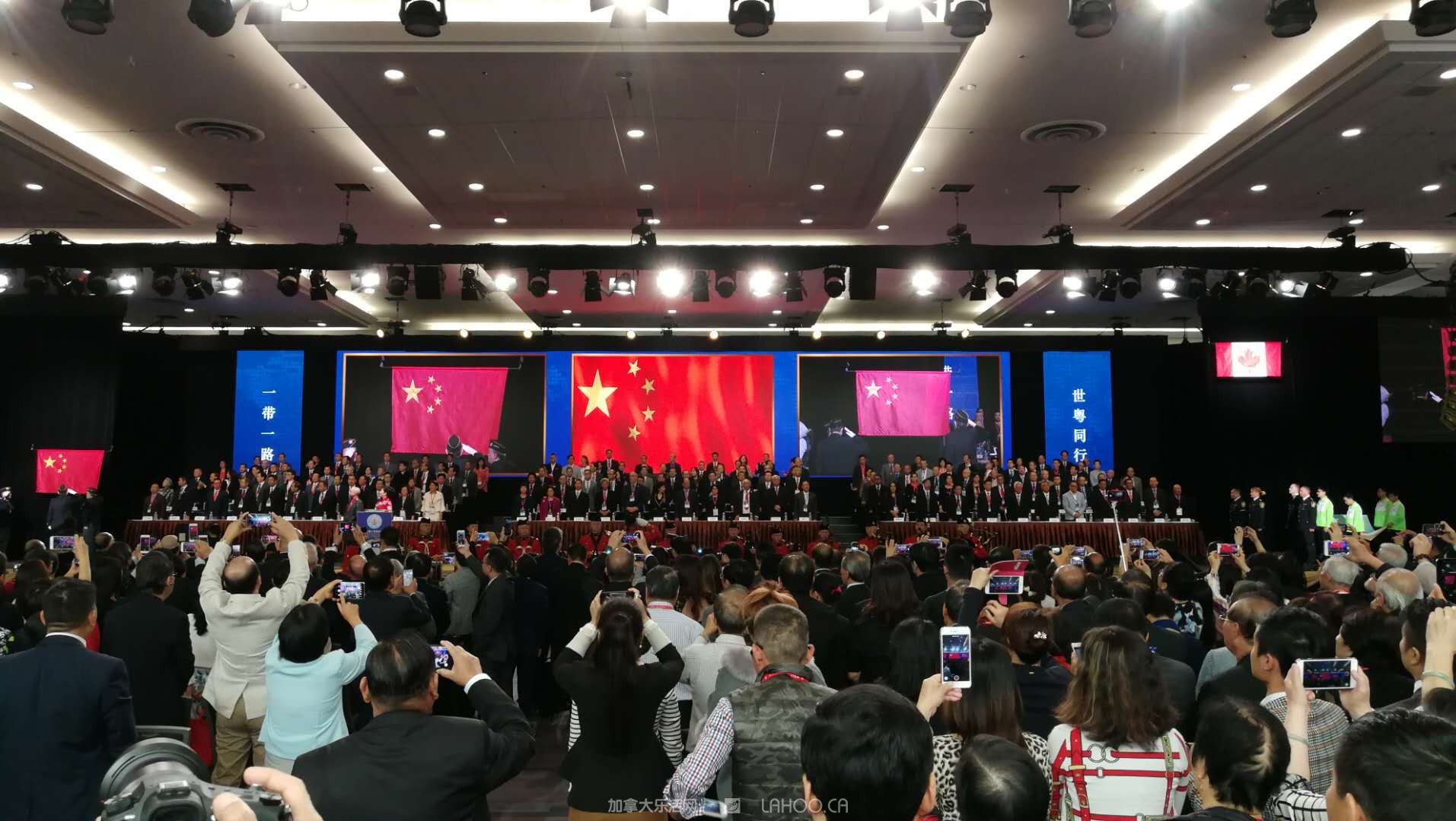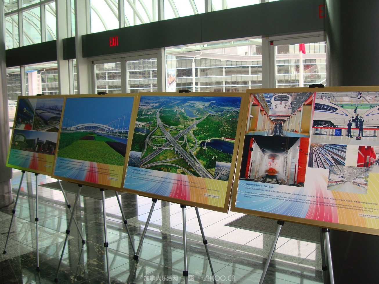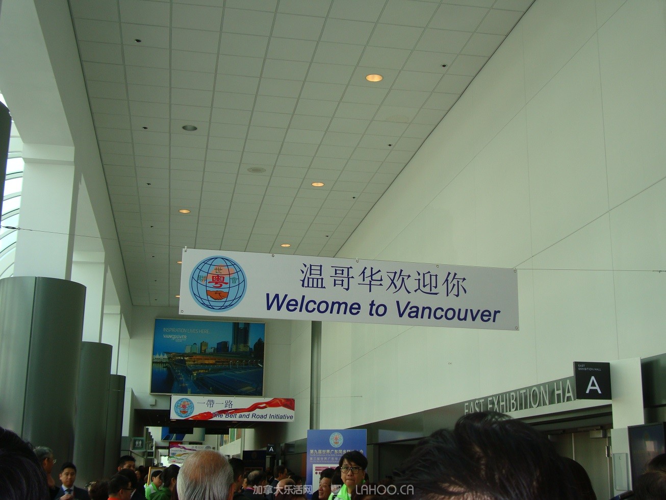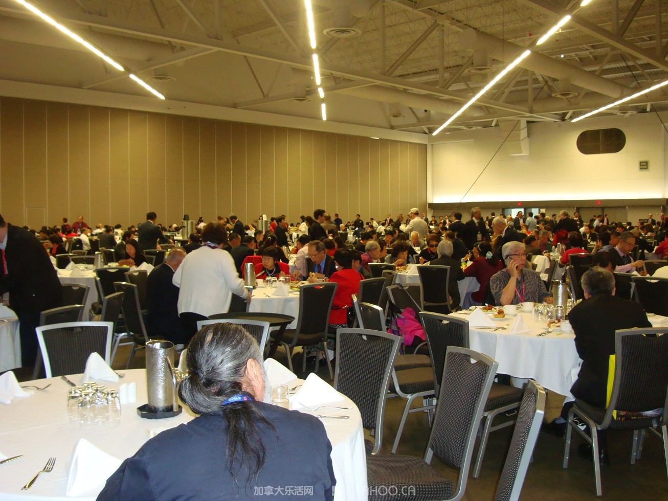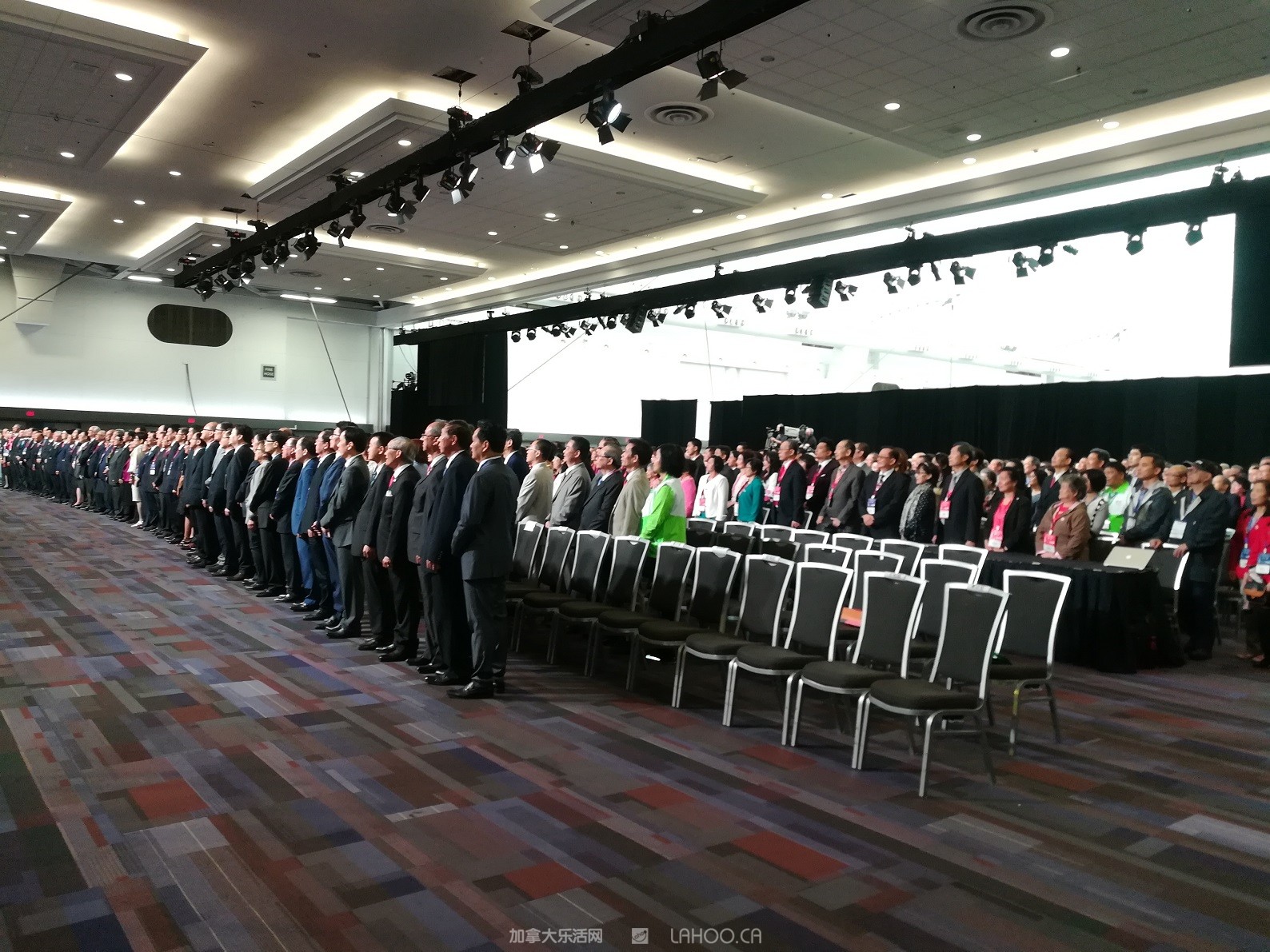 早上七、八点左右,伴随着温哥华会展中心外面的舞狮队伍,嘉宾们纷纷进入会展中心。大会为了更好进行宣传,在会展中心走廊里举办了美丽广东图片展和加拿大华人历史图片展。与会者观看完图片展后,全部进入会场,然后所有参会者大合影。