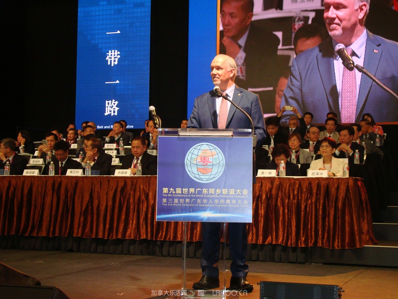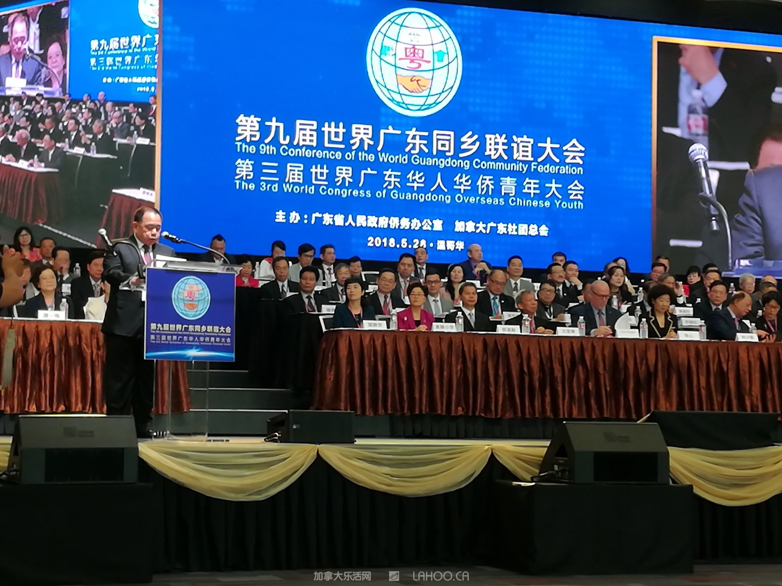 加拿大BC省省长贺瑾(John Horgan)、中国驻温哥华总领事佟晓玲、副总领事王承军,加拿大国会议员黄陈小萍和关慧贞、卑诗省省议员屈洁冰和叶志明、列治文市长马保定、列治文市议员区泽光、温哥华市议员雷建华,第九届世界广东同乡联谊大会共同主席林少毅、方君学、朱展伦等侨领和本地华侨华人社团代表出席大会。