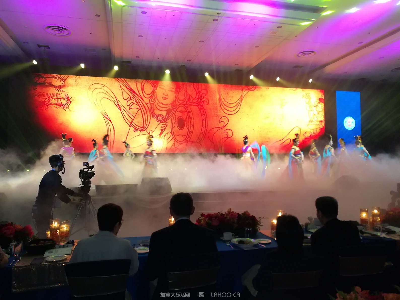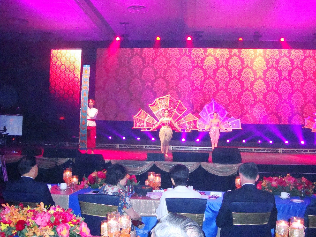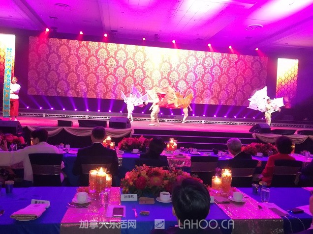 晚宴是在晚上七点开始,在美轮美奂节目伴随下,整个晚宴大厅散发出一种朦胧之美。