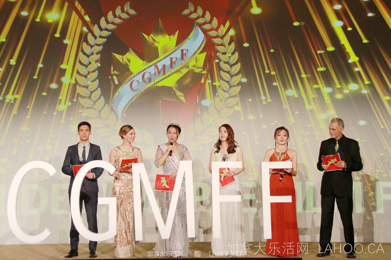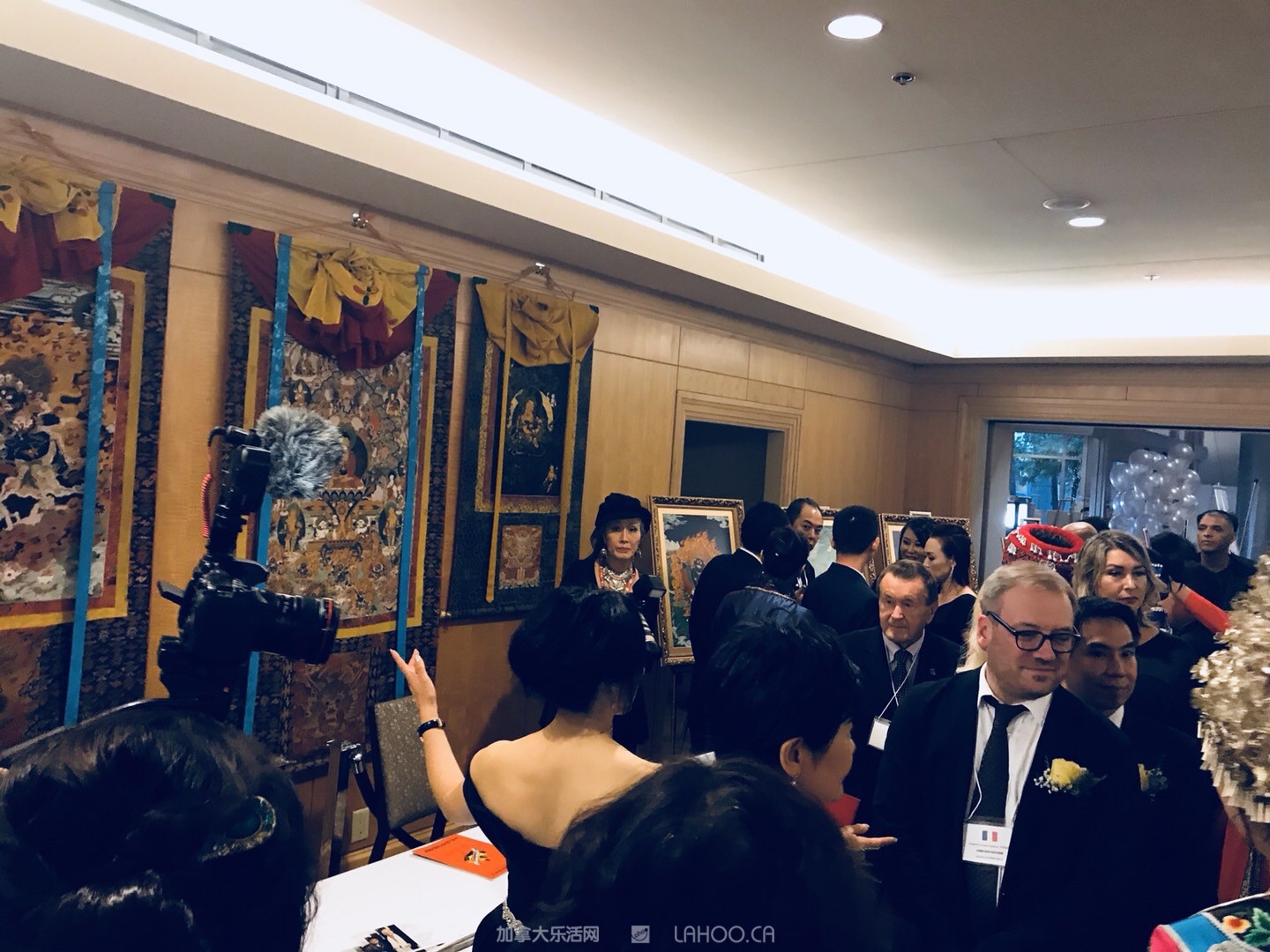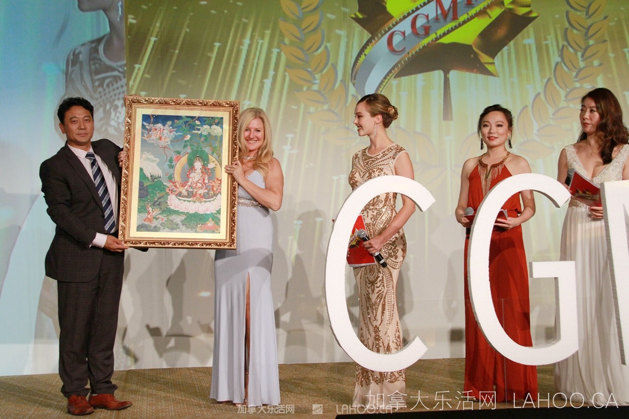 著名的藏族音乐人尕让邓真特地为电影节赠送一副中国拉萨著名唐卡艺术大师赤增绕旦的真品,价值5万加币的唐卡艺术作品《绿度母》,组委会执行秘书长Catherine Falcon 上台接收。
