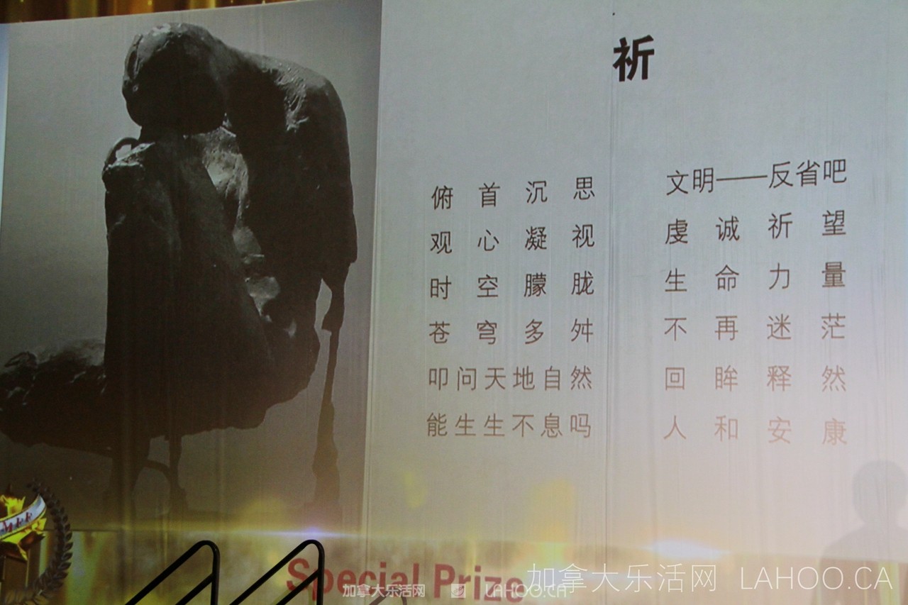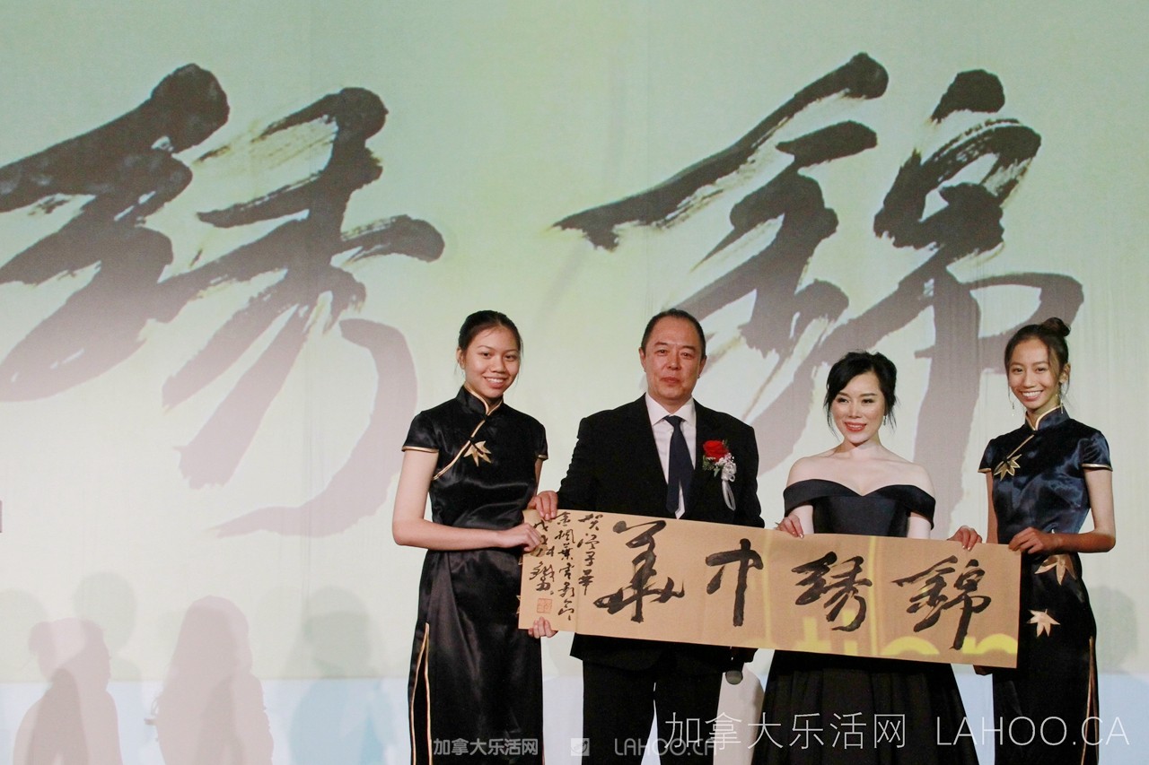 经过几轮竞价,最终由加拿大金枫叶国际电影节名誉主席、加中商会会长余俊作先生以三万加币竞得此幅书法
