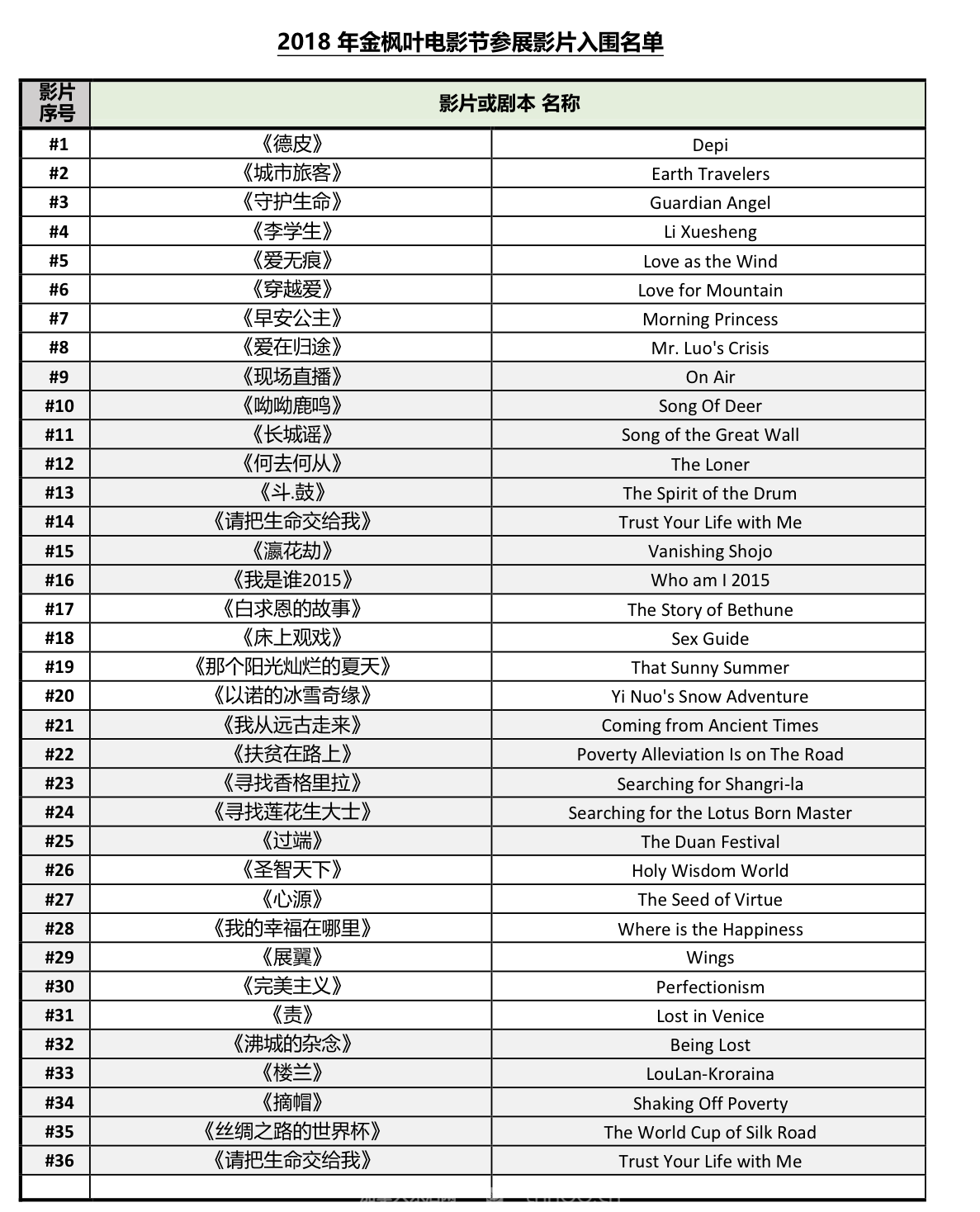 * 2018年9月24日晚上7点:金枫叶国际电影节“金枫叶”奖颁奖典礼与嘉宾音乐会,位于列治文河石大剧院 RiverRock Show Theatre.(凭票入场)