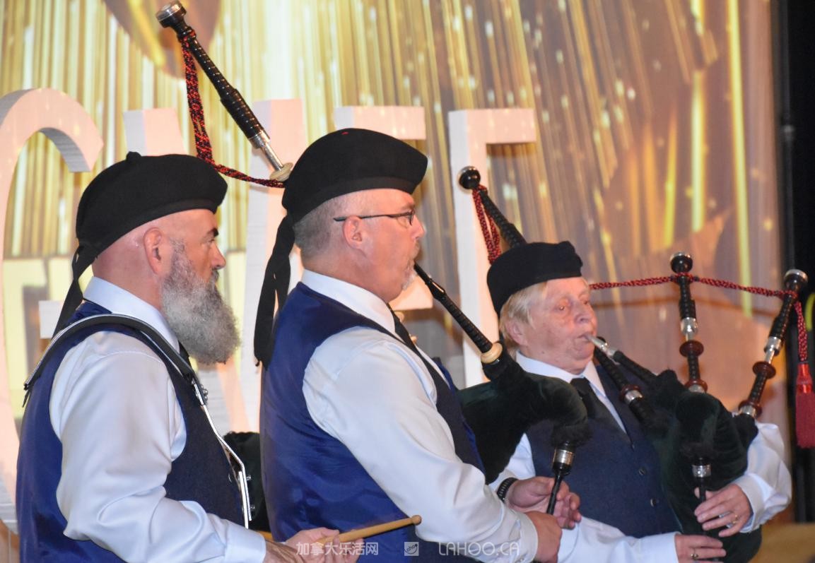 主持人们带领嘉宾们全体起立,唱加拿大国歌