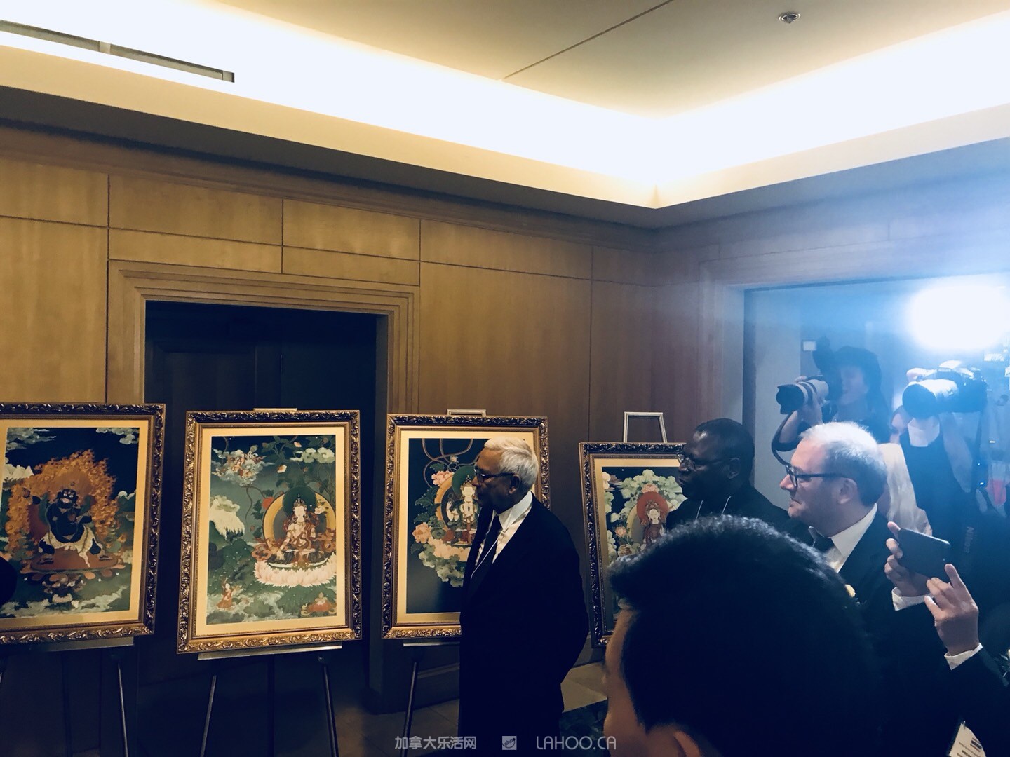 嘉宾们兴致勃勃地参观唐卡艺术展