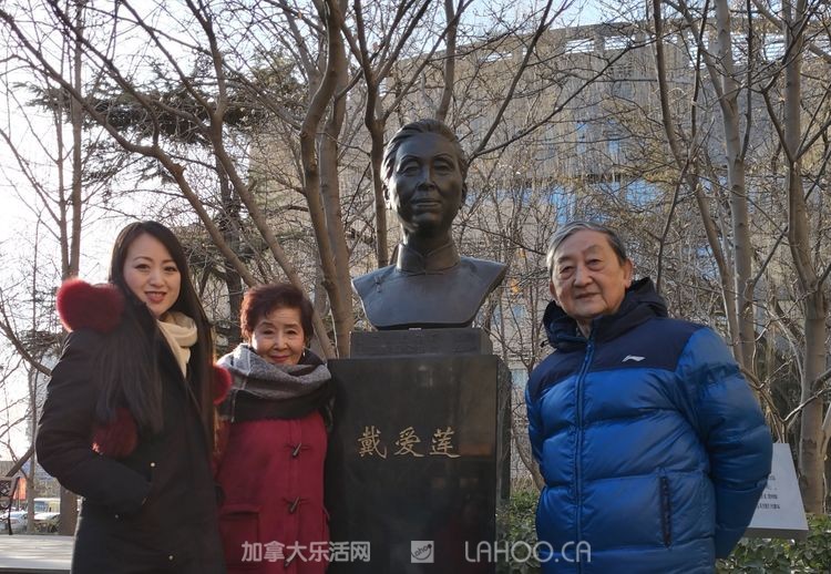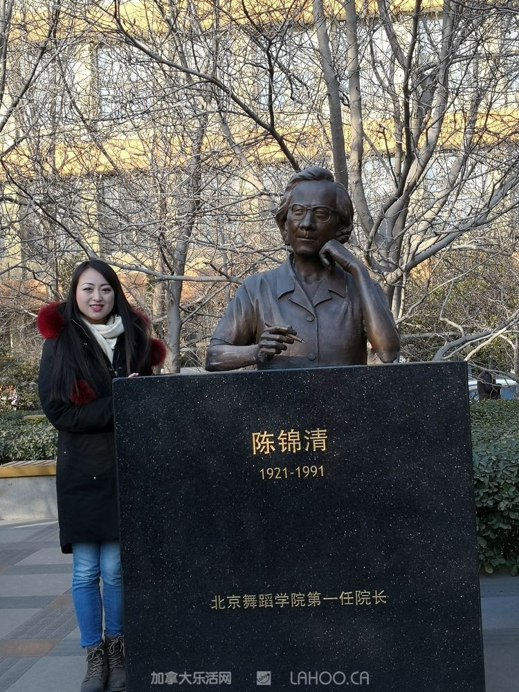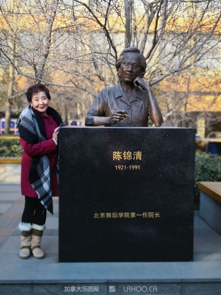 还有一个雕像是戴爱莲先生的,戴先生称得上是中国的舞蹈之母,她是海外华侨,当年怀着赤子之心回到祖国,最早创办了一些舞蹈训练班,为中国舞蹈的发展做出了巨大的贡献。戴爱莲先生一直是北京舞蹈学院的名誉校长。听了介绍后,学生们纷纷怀着崇敬的心情跟舞蹈前辈合影留念。