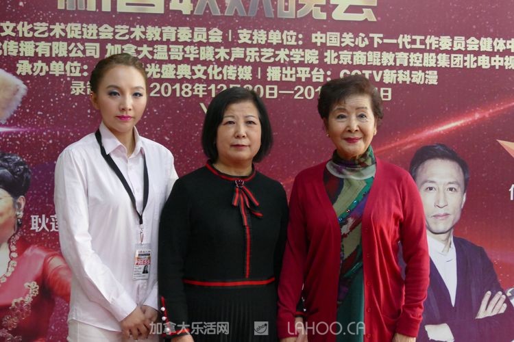 表演结束后,陈玲院长接受了美国世界名人网记者的采访,并与晚会主席和总导演合影留念。