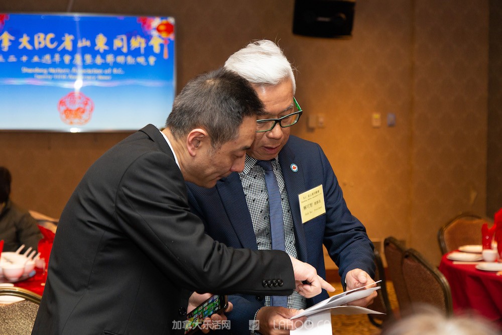 [她乡华闻(微信ID:chicvancouver)讯]2019年2月23日,加拿大B.C.省山东同乡会成立二十五周年会庆暨春节联欢晚会在温哥华富大海鲜酒家成功举办,晚会旨在联谊乡亲,互相交流,广交朋友,共度佳节。活动现场内容丰富,包括二十五年会刊展示、美味晚餐、歌舞表演、幸运抽奖、分发2019年会刊、向优秀学子颁发2018年度奖学金、为2019年会刊有奖徵文活动的获奖者颁发奖品等。晚会邀请各级政要与嘉宾、同乡会会员、山东同乡及山东大学温哥华校友会校友共300余人参加,现场一派热闹非凡。她乡周刊全程报道本次活动。