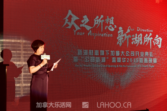 本次庆典首先由新湖财富加拿公司CEO孙丽娟女士致辞。孙女士深耕中国加拿大财富管理行业近二十年,在皇家银行保险公司(RBC Insurance)担任分行副经理,丰业银行财富管理公司(ScotiaMcleod)担任高级理财经理,花旗银行私人银行(Citibank Private Banking)担任副总裁。孙丽娟女士将多年大型国际顶尖银行及财富管理的经验带到新湖财富加拿大公司,依托新湖财富平台体系和成熟可靠的产品体系,为加拿大财富管理市场注入新的活力。孙丽娟女士在致辞中表示:作为移民,我们每个人都有不同的故事,但是,所有的故事都离不开我们对于理想和幸福的追求!我们永远不能放弃的是青春的热情和追梦的脚步!希望新湖财富加拿大公司能够吸引更多的有识之士加盟,新湖将为大家提供更广阔的空间和舞台,期待我们共创辉煌!