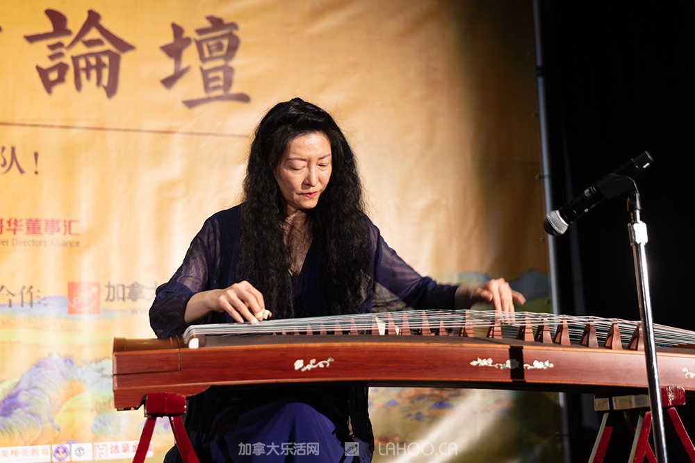 古琴是易经的声音延伸,古筝是儒道的声音延伸。论坛以旅美著名古琴演奏家云裳老师的古筝曲《渔舟唱晚》,古琴曲《关山月》、《酒狂》开场,悠长、旷远而清冷的天籁之声把全体观众带入了与自然宇宙平衡融溶、天人合一的能量场中……