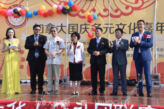 加拿大国会议员黄陈小萍、关慧贞和苏立道登台致辞,感谢和赞扬加拿大华人社团联席举办这一多族裔共庆国庆和增进多族裔间相互了解和团结合作的深远意义。他们高度赞扬和感谢谢华裔一百多年来为创建和建设加拿大作出的巨大贡献和不懈的努力。