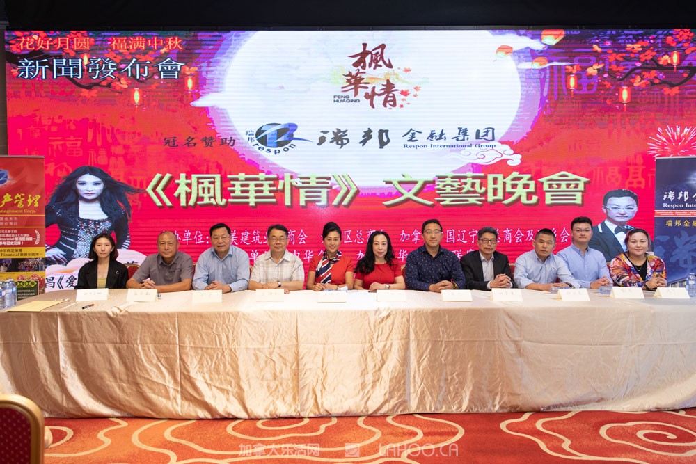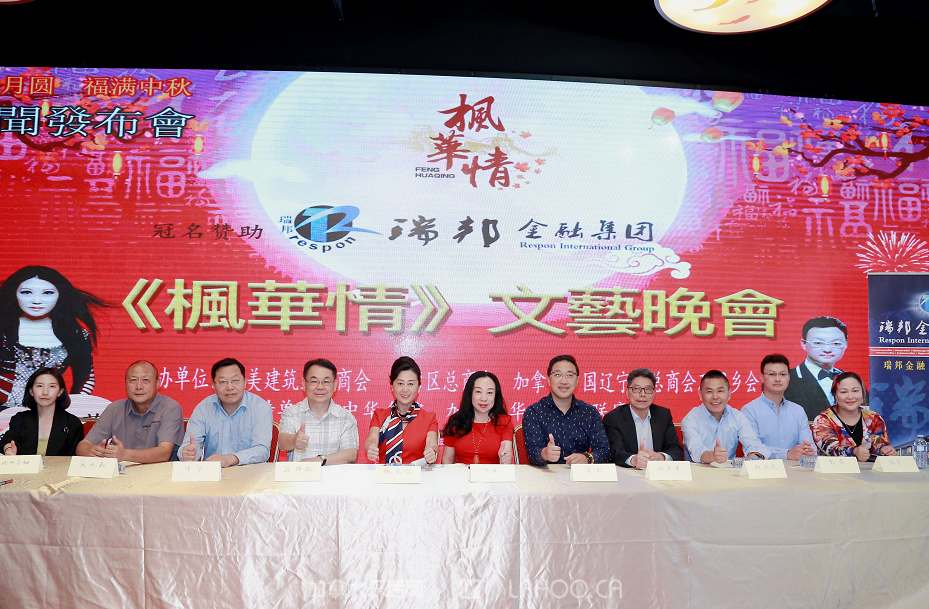 【她乡华闻(微信ID:chicvancouver)讯】星光闪耀,皓月生辉,中秋佳节,美满时刻。8月26日下午,《枫华情》新闻发布会在福满楼海鲜洒家隆重举行,《枫华情》文艺晚会由瑞邦金融集团冠名赞助,北美建筑业总商会、大湾区总商会、加拿大中国辽宁省总商会/同乡总会联合主办,中华会馆、加拿大华人联合总会 共同支持。《枫华情》大型庆祝中秋文艺晚会将于9月11日在Vancouver Playhouse剧场隆重上演,晚会特邀一首《爱江山更爱美人》火遍全球大街小巷的中国台湾著名女歌后李丽芬;中国旅美青年钢琴演奏家郭芮以及温哥华本地著名歌手为晚会献上精彩表演,主办方希望大家在这个美好团员的日子幸福相约,相聚在这皎洁的明月之夜,欢度中秋佳节!