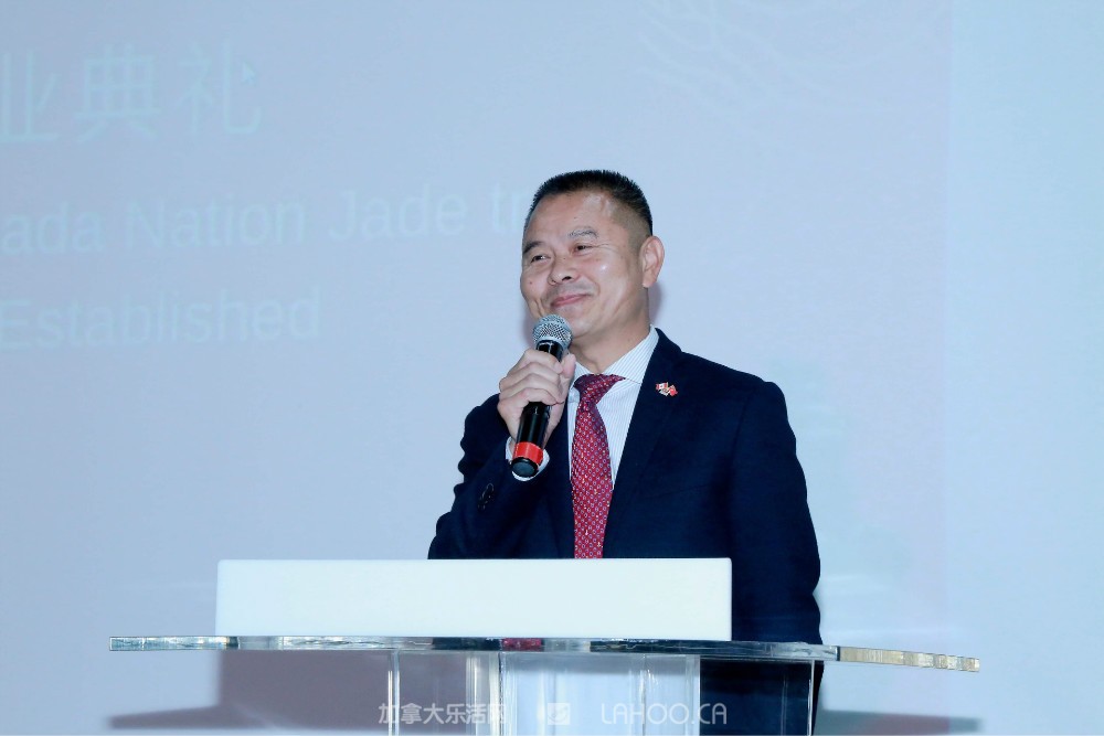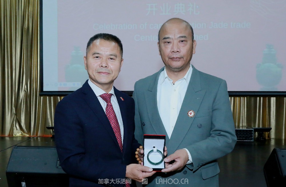 与会嘉宾纷纷受邀登台表示祝贺。希望加拿大国家玉石交易中心的成立,能更好地推动加拿大碧玉的开发,让世界了解加拿大碧玉,让世界了解加拿大卑诗省,让世界了解温哥华。也希望加拿大碧玉能成为促进中加贸易,促进中加经济往来的催化剂。嘉宾也表示,中国人自古对玉石就情有独钟,大家对玉的认识,玉养人,人养玉,古来有之。历史上也留下许多有关玉石的诗篇和佳句,比如:临江之畔,璞石无光,千年磨砺,温润有方;洛阳亲友如相问,一片冰心在玉壶。兰陵美酒郁金香,玉碗盛来琥珀光。细观玉轩吟,一生良苦心。雕琢复雕琢,片玉万黄金….